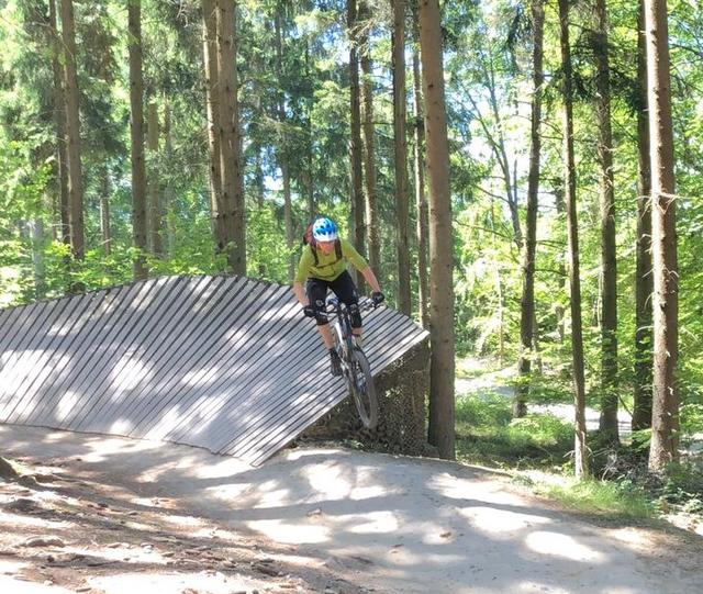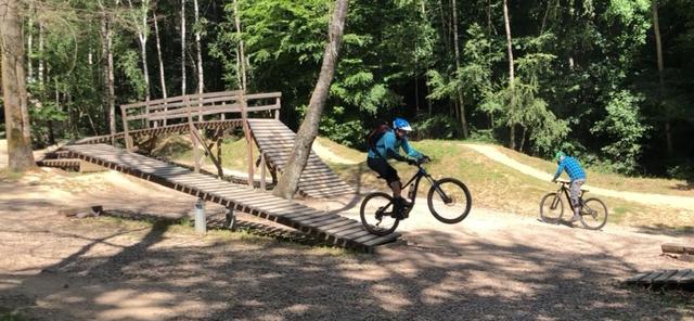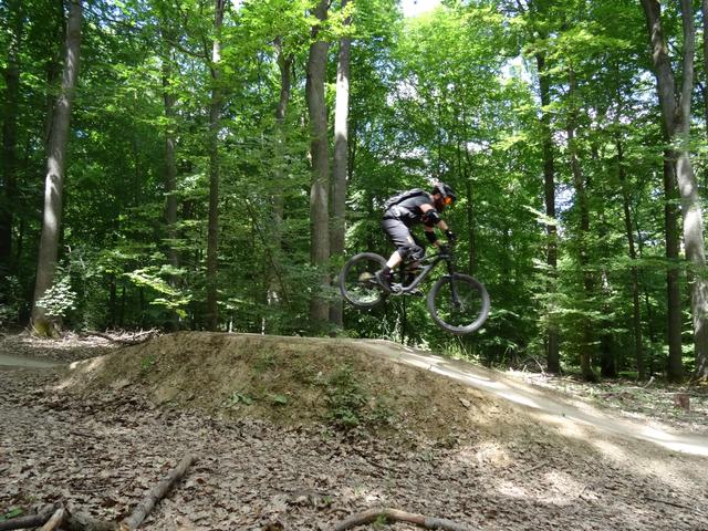 Nach einer Einrollrunde auf dem "Wildhog Trail" wurde noch der Übungsparcours angesteuert. Ein Spielplatz für grosse Jungs und Mädels; mit Steilabfahrt, Drops, Pumptrail und einer Wippe.