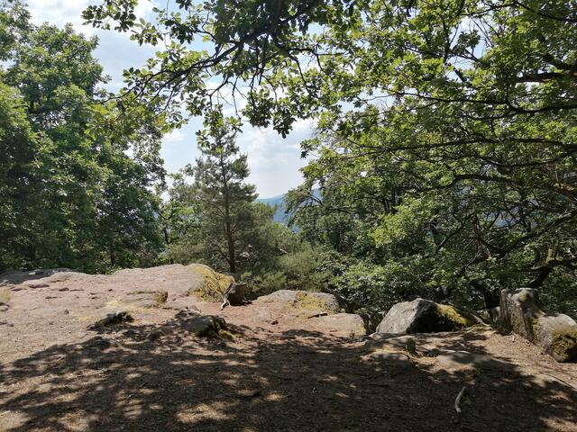 Wir starten am Parkplatz Klaustal und müssen erstmal schnell und schmerzvoll 300 Höhenmeter bis zum "Murrmirnichtviel" hochstrampeln. Aber im Ernst; der mittlere Teil ist steil, aber schnell weggetreten, danach folgt schon der erste Trail mit einer kurzen Schiebepassage zur "gelben Bank". Weiter an der Ruine vorbei, geht es über mehrere Pfade zu den 3 Eichen; hier können wir das Wimmelbild Pfälzerwald (Uffbasse) bewundern, das schon hohe Wellen schlug!?