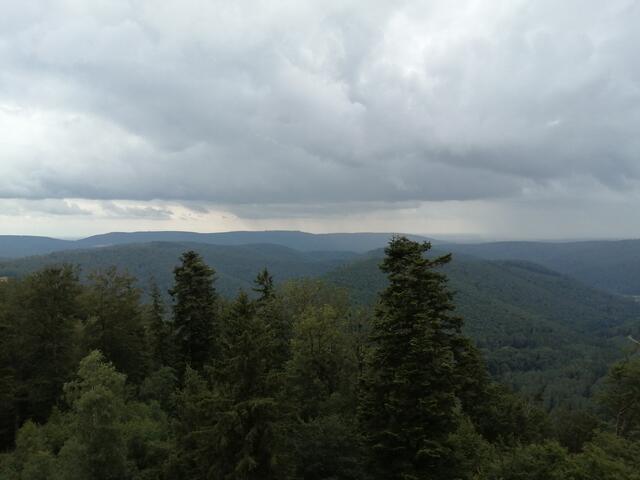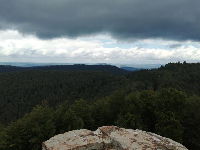 Da wir das Panorama uns nicht entgehen lassen wollten sind wir nicht über den Zaun geklettert, sondern rüber ins Elsass zur Hohen-und Löwenburg. Die Sicht war OK, Pfälzerwald und Schwarzwald sowie Vogesen konnten wir sehen. Leider aber auch einen grauen Vorhang, der nix Gutes verhiess!