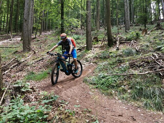 Die letzten Kilometer fuhren wir dann durch strömenden Regen auf Wegen und nochmals schönen Trails nach Rumbach. Der Radweg auf der ehemaligen Wasgauwaldbahn brachte uns zurück zum Startplatz, wo erstmal umziehen angesagt war.