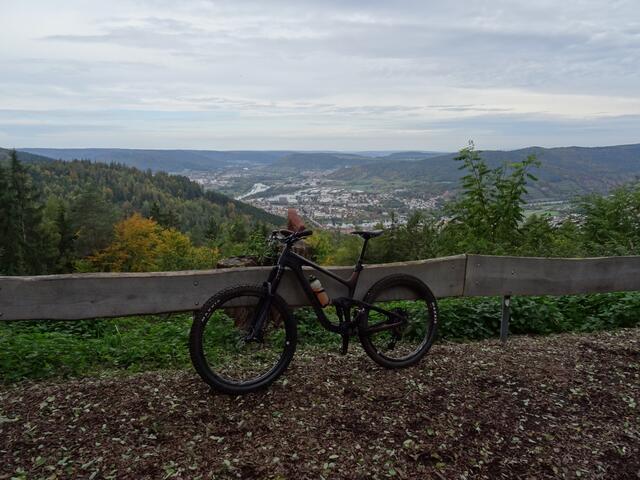 Der nächste Anstieg zog sich auch wieder über cirka 200 Höhenmeter und die sind echt teilweise steil im Odenwald, der Untergrund unterscheidet sich aber nicht gross von unserem hier! Oben angekommen geht es eben! zu der "Haagsaussicht", ein toller Platz hoch über Miltenberg. Danach weiter eben über einen lehmigen Pfad zu dem Funtrack (klein Stromberg mit Northshore).