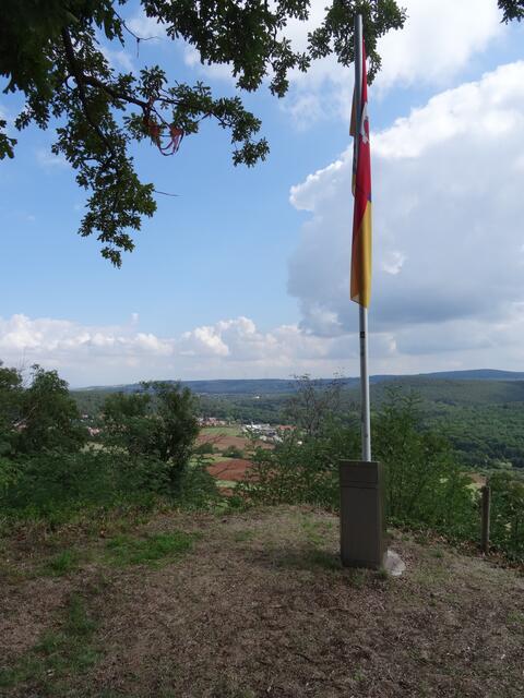 Nach der Stärkung genossen wir noch die Aussicht von der Ludwigshalle in Richtung Donnersberg. Weiter Pfade führten uns in Richtung Arleshof und Schotterwege zur Burgruine Stauf, mit ebenfalls toller Aussicht in den Pfälzerwald. Nach Besichtigen der Burg fuhren wir technisch bergab in Richtung Ramsen. Dort durch den Ort durch zum Eiswoog.
