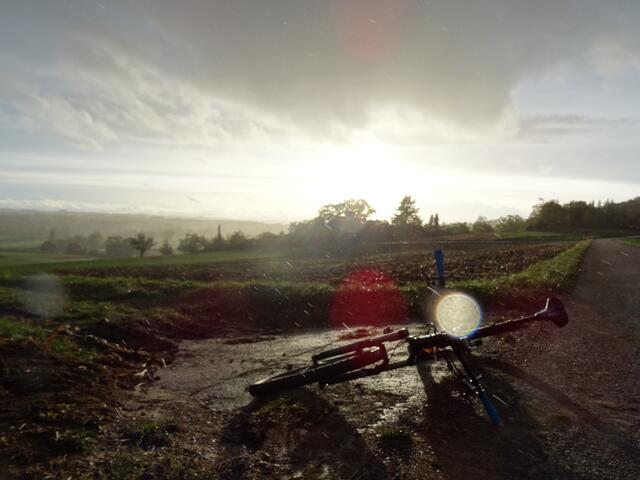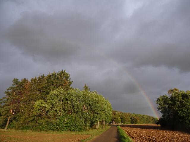 Der Heimweg, komplett durch den Wald, vorbei am Katzenbacher Hof und am Holzersee zum Eltinger Blick, wieder ein toller Aussichtsberg, leider auf einer ehemaligen Mülldeponie. Erst in Rutesheim gab es wieder Zivilisation; das letzte Stück mussten wir im Regen zurücklegen; da aber gleichzeitig die Sonne schien, war das erträglich; selbst bei 8 Grad!