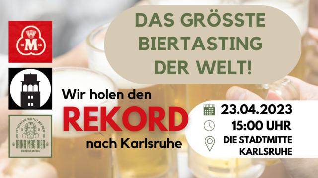 Der Veranstaltungstermin, der 23.04.2023 ist mit Bedacht gewählt. Er ist zum einen der Tag des Bieres, an dem traditionell das Reinheitsgebot gefeiert wird. Zum anderem wird an diesem Wochenende in der Karlsruher Innenstadt das Fest der Sinne gefeiert. Zu schlagen gilt es an diesem Tag den von der Moritz Brauerei in Barcelona aufgestellten Rekord von 1.243 Teilnehmern an einem Biertasting. Mit dem Deutschen Rekordinstitut wurde ein Partner gefunden, der den Weltrekord – sollte er denn gebrochen werden – direkt vor Ort offiziell durch eine Rekordrichterin zertifiziert.