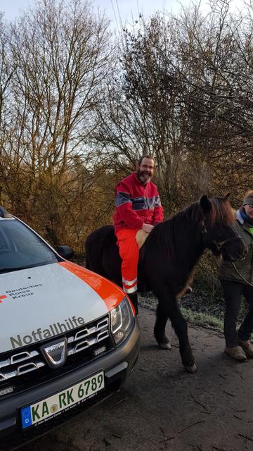 Die Pferde waren komplett ausgebucht. Und für unsere Notfallhilfe kamen unglaubliche 400€ in die Spendenkasse. Wir sind wirklich sprachlos, wie spendenfreudig die Besucher waren. Wir bedanken uns ganz herzlich bei allen. Ganz besonders natürlich bei Kerstin, Anne und Beate. Eine super Idee, perfekt umgesetzt! Um Gefühl für das Ganze zu bekommen, war ein DRK-ler aufgefordert, auch auf ein Pferd zu steigen. Nach wenigen Metern siegte jedoch die Vernunft…