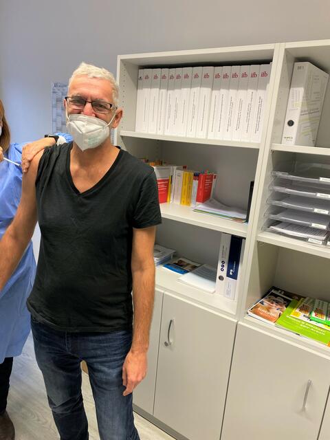 Nachdem alle organisatorischen Dinge besprochen waren, ging das Impfangebot per E-Mail an die Mitarbeitenden. Wenige Stunden später waren alle Impfplätze vergeben und etliche Namen standen auf der Warteliste. Zwei Tage danach war es soweit. Die Büros des AWO Betriebsrats in der Kaiserstraße 209 verwandelten sich für einen Tag in ein Mini-Impfzentrum. An dem Tag wurden 48 Booster- und eine Erstimpfung von Dr. Eva Schneider an die Frau bzw. den Mann gebracht. „Die Kolleg*innen haben sich alle mehrmals bedankt und waren sehr froh und glücklich über die Möglichkeit, sich bei ihrem Arbeitgeber während der Arbeitszeit impfen lassen zu können“, erzählt Manuel Koch, Vorsitzender des Betriebsrats.