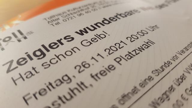 Veranstaltung. „Hat schon Gelb“ hieß es am Freitag im Karlsruher "Tollhaus", als Arnd Zeigler mit seiner Tour Station machte. „Zeiglers wunderbare Welt des Fußballs“ verzückt seit Jahren Fußballfans aus ganz Deutschland - egal, welcher Verein favorisiert wird - denn Zeigler geht neben eigenen Episoden, skurillen Momenten und tollen Toren auch der Frage nach, warum wir den Fußball so lieben. "Toll, dass wieder Publikum da ist", freute sich Zeigler, auch wenn die Regelungen mittlerweile für Besucher durchaus einem Hürdenlauf auf dem Weg zur Kultur ähneln! GG, Maske und getestet, alles kontrolliert. Im "Tollhaus" lassen sich diese Regeln auch umsetzen, so "Tollhaus"-Chef Bernd Belschner, der ein "volles Haus" begrüßte; was in diesen Tagen eben als "voll" zählt.