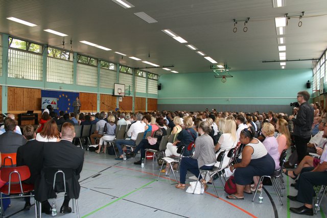 Eine emotional-tiefsinnig-fröhliche Abiturverleihung gab es am 7. Juli in der Europäischen Schule Karlsruhe. Das einzige Abitur-Diplom der Welt, das in allen 28 EU-Mitgliedstaaten, in der Schweiz, in Kanada und in der USA und in vielen anderen Ländern anerkannt ist, nahmen in diesem Jahr 65 Schulabgänger bei der offiziellen Verleihung in der Schulturnhalle entgegen.