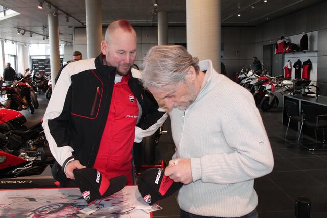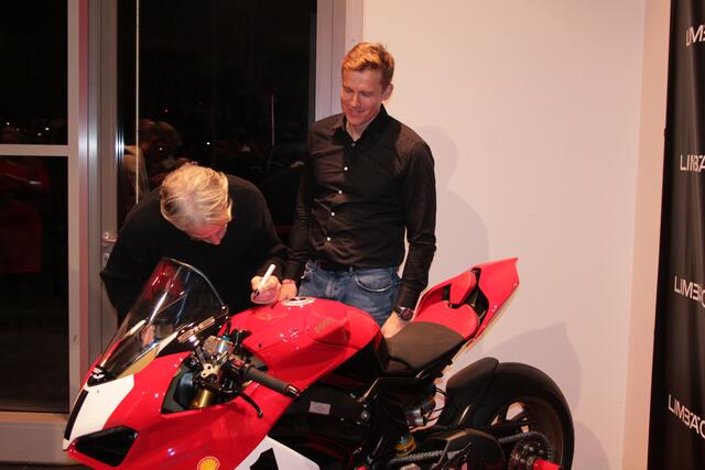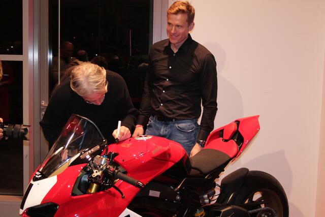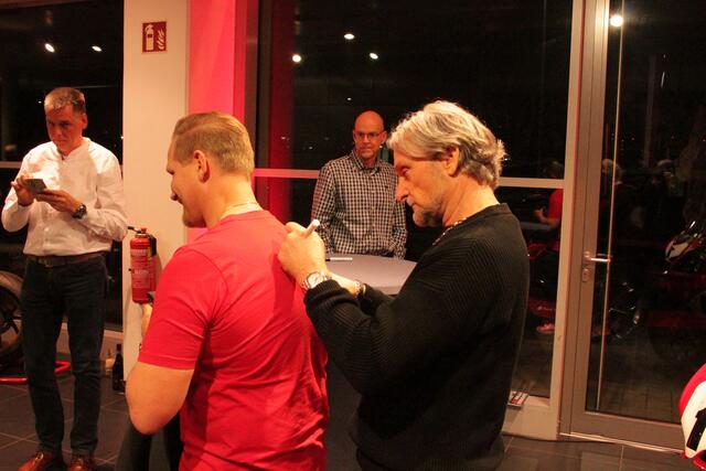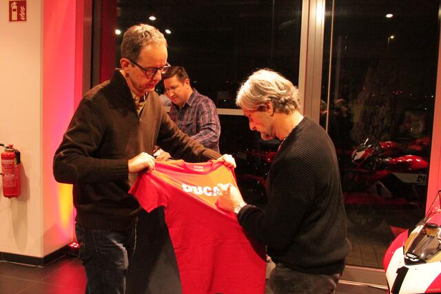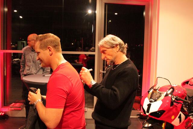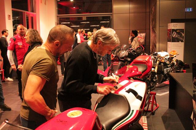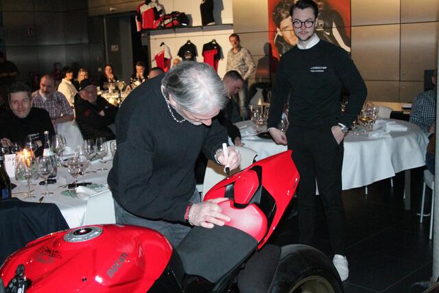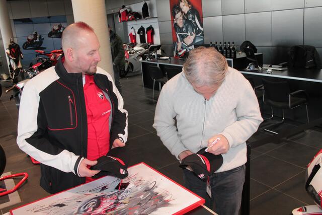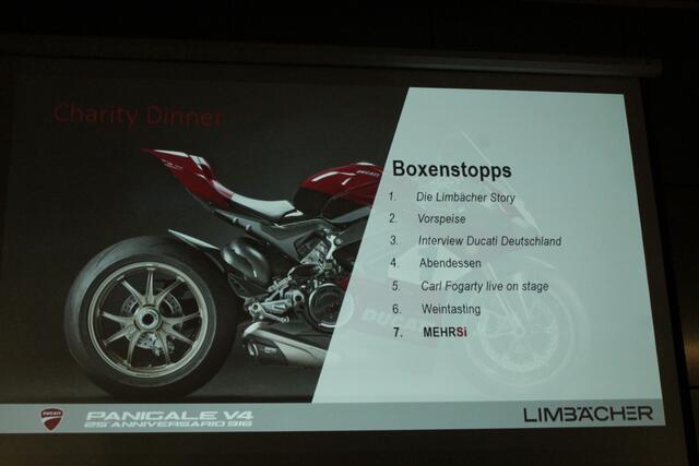 Am Samstagabend 4. März war der vierfache Superbike-Weltmeister Carl Fogarty Stargast beim Charity-Dinner zu Gunsten von MEHRSI im Ducati-Store der Firma Limbächer & Limbächer GmbH in 70794 Filderstadt-Bernhausen.
