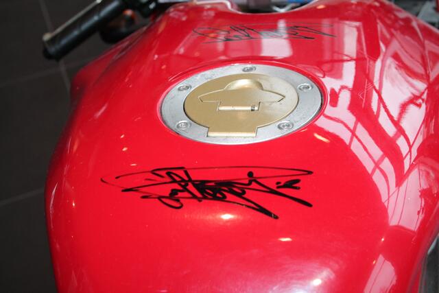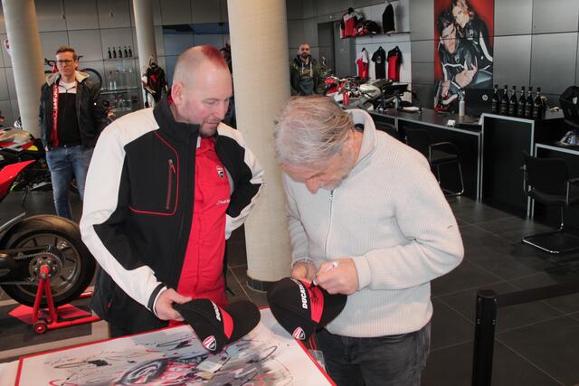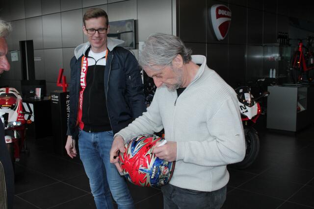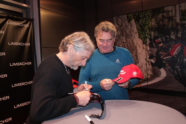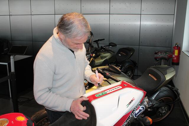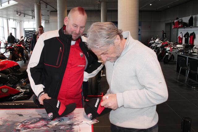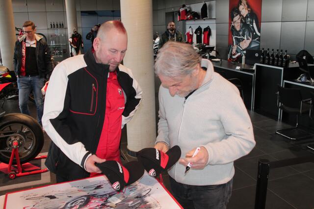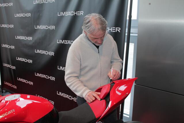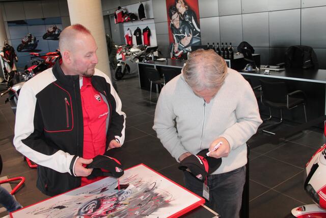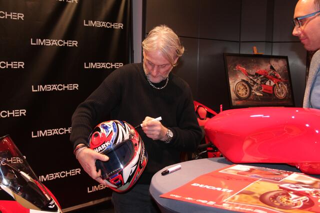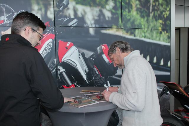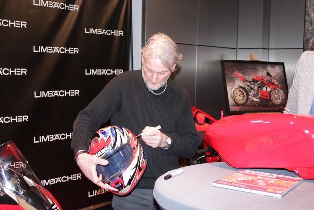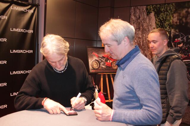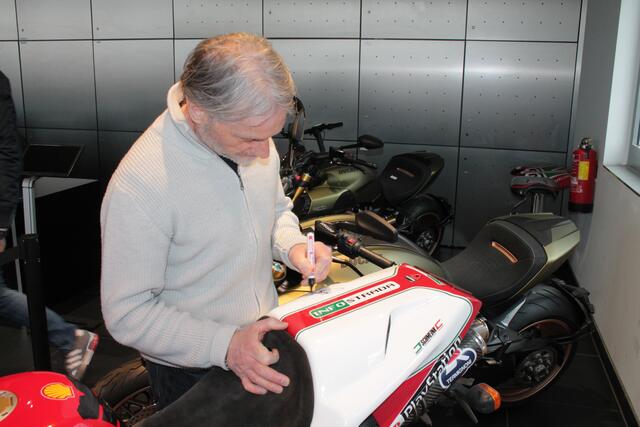 Danach erfüllte Carl Fogarty zahlreiche Autogrammwünsche und signierte Motorräder, Bücher, Helme, Poster, Shirts, usw.