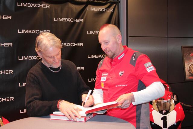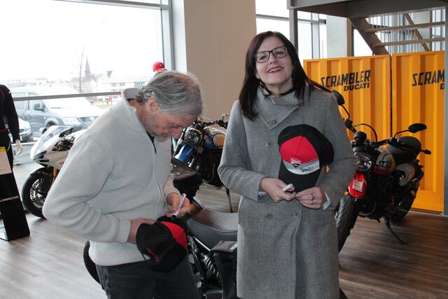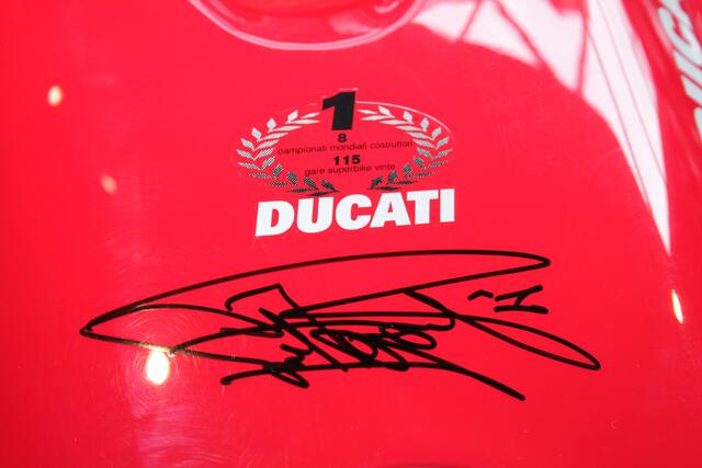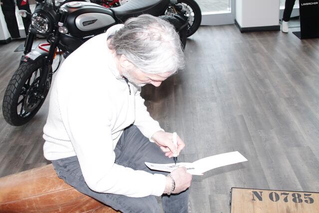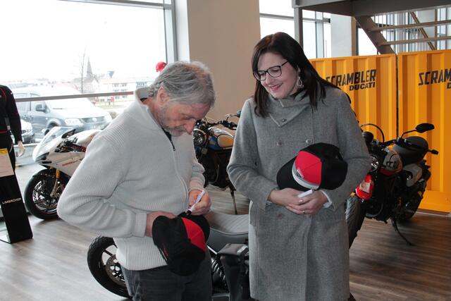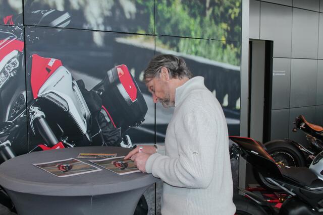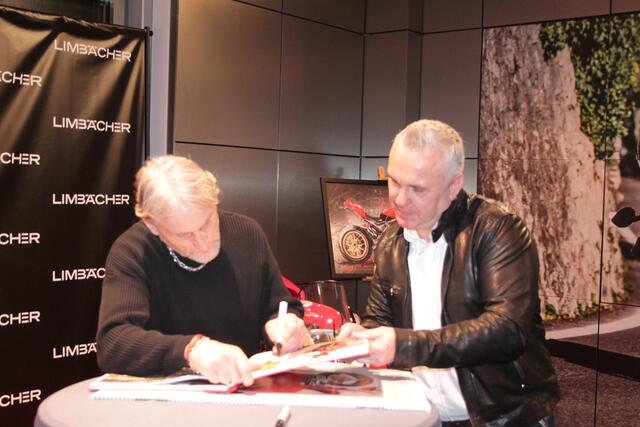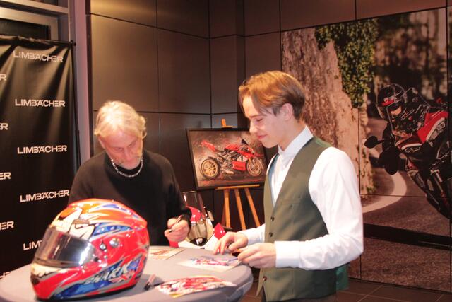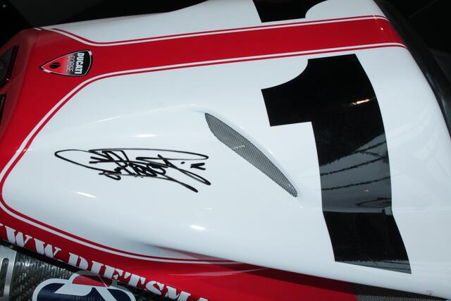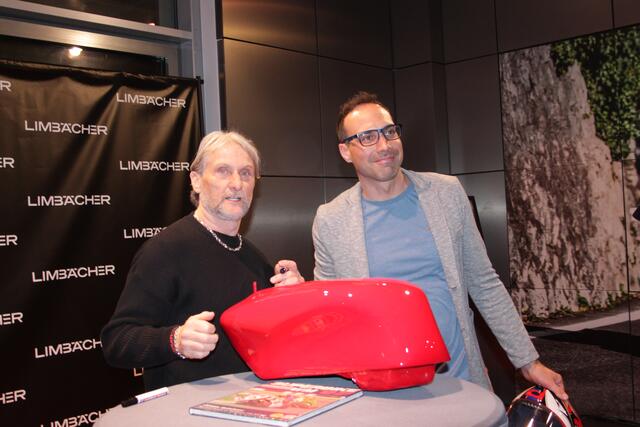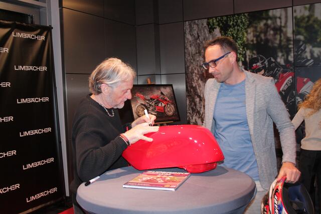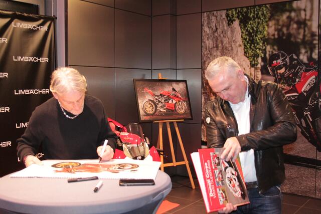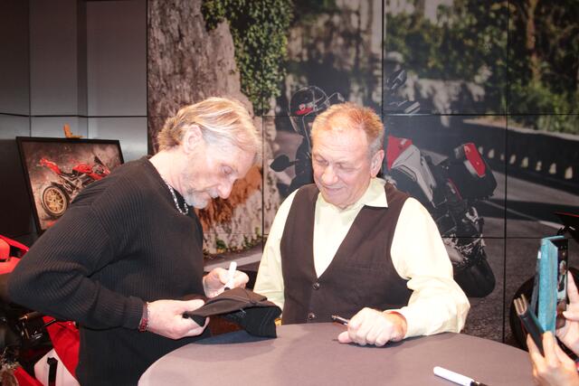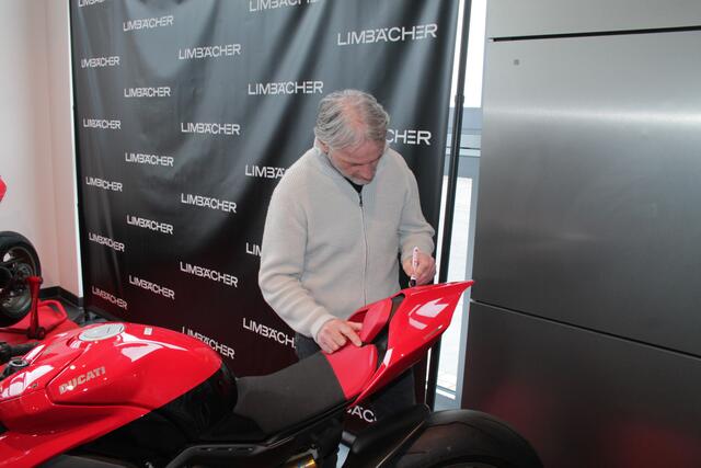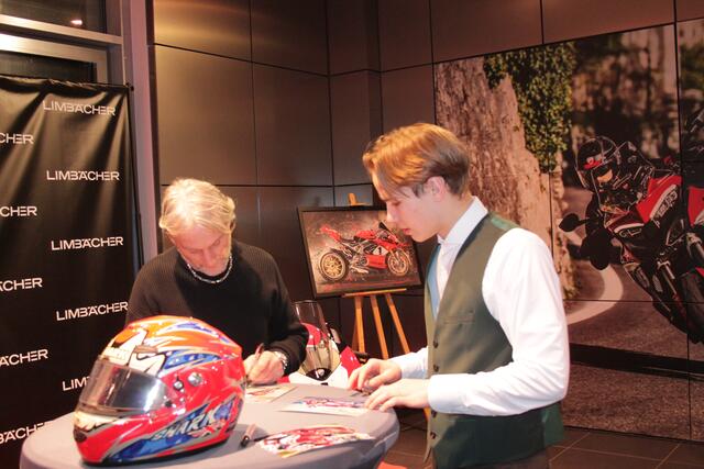 Danach erfüllte Carl Fogarty zahlreiche Autogrammwünsche und signierte Motorräder, Bücher, Helme, Poster, Shirts, usw.
