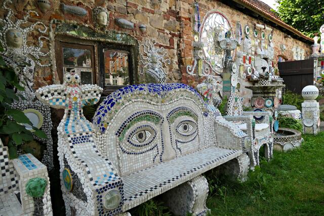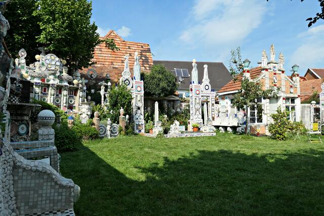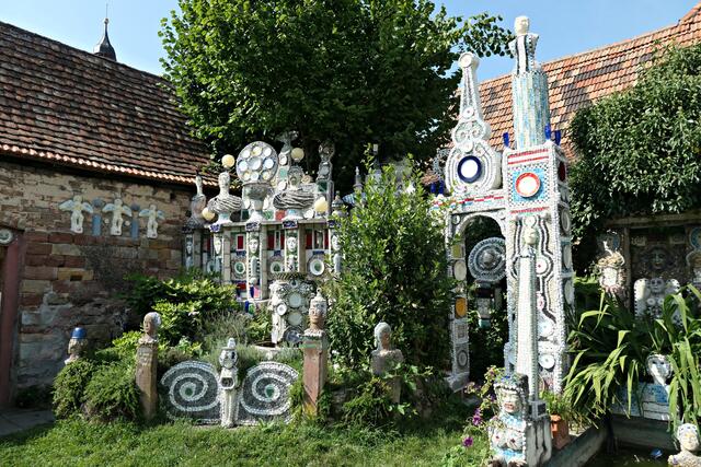Man geht hier durch den Garten mit vor Erstaunen offenem Mund. Culmann hat sämtliche Kunstwerke hier selbst gemacht. Von der Bauschuttdeponie, Flohmarktbesuchen, Ruandamarkt und von Privatpersonen bekomme er viele Gegenstände, die er sozusagen zerdeppert und zu bunten Mosaikgebilden formt. So findet man auf dem Gelände viele zerbrochene Spiegel, Keramik- und Porzellanteile, aber auch über 800 heile Teller. Es ist Außenseiterkunst und einzigartig im Bundesgebiet und steht in der Garten-Architektur-Tradition von Gaudi, Hundertwasser, Niki de Saint-Phalle und weiteren Außenseiterkünstlern. Die ersten Figuren entstanden 1983. Anlässlich der Landesgartenschau in Landau 2014/15 errichtete Culmann diesen außergewöhnlichen Garten. Mittlerweile ist sein „Traumgarten“ so bekannt, dass ganze Busse aus dem Bundesgebiet den Weg in die Pfalz finden. Da kommen dann nicht nur Besucher aus Städten wie Hamburg, München und Berlin, sondern auch aus anderen Kontinenten wie Asien und Amerika. So muss man schon ein bisschen schmunzeln, wenn Engländer auf ihrem Deutschlandbesuch nur drei Ziele auf ihrem to-do-Zettel stehen haben: In Speyer der Dom, in Annweiler die Burg Trifels und Culmanns Traumgarten in Billigheim-Ingenheim!