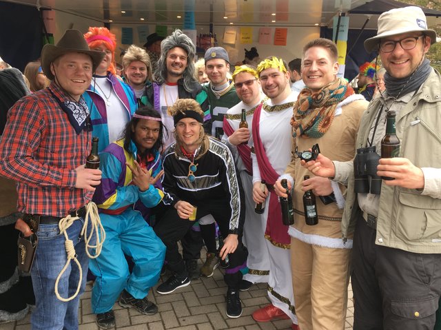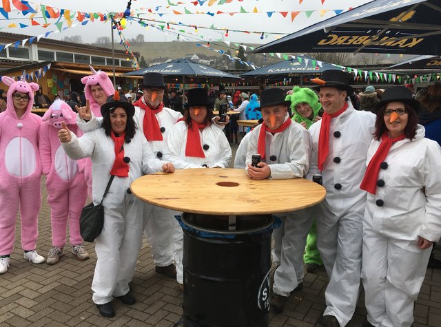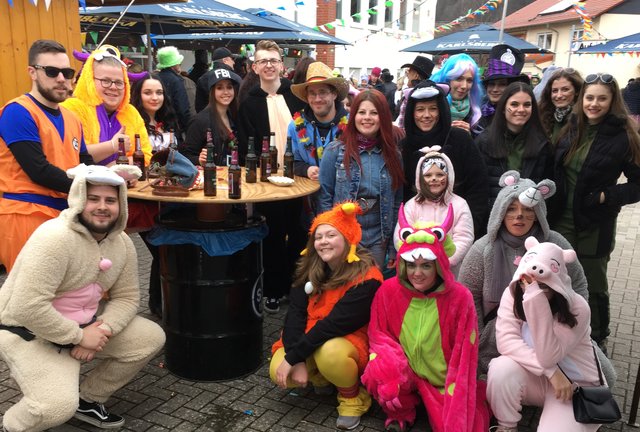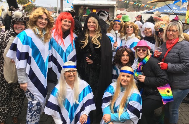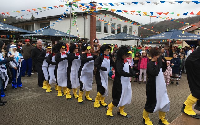 Bann. Am Faschingssamstag wurde zum fünften Mal „de Strooßefasching“ in Bann gefeiert. Trotz trüben Wetters fanden sich bereits am frühen Nachmittag viele närrische Besucher auf dem Platz vor dem Haus der Vereine ein. Alle Feiernden waren verkleidet und die Vielfalt der Kostüme ergab ein wunderschönes Bild. „DJ Frank“ mit super Musik und die „Krickenbacher Fassenachtsmäd“ mit ihren herrlichen Tanzdarbietungen als Pinguine begeisterten die Besucher und es herrschte bei Polonaise und Schunkelrunden eine super Stimmung bis in den Abend.