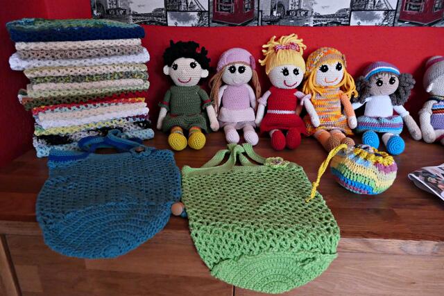 Moni: Ich mache Socken, Schals und Puppen. Noch lieber häkle ich. All meine Freunde und Verwandten sind mittlerweile eingedeckt. Ich gebe sehr viel Geld für Wolle aus, komme an keinem Handarbeitsladen vorbei ohne was zu kaufen. Einmal im Jahr gehe ich auf einen kleinen Weihnachtsmarkt und biete meine Sachen an (zum Einkaufspreis). An Handarbeiten kann man sowieso nichts verdienen, es ist viel zu zeitaufwendig.