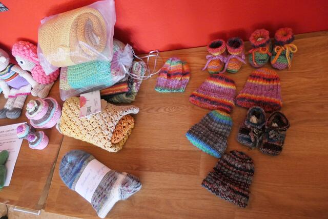 - Monika Holzhauser-Petry mit ihren diversen Fertigprodukten aus flauschiger Wolle