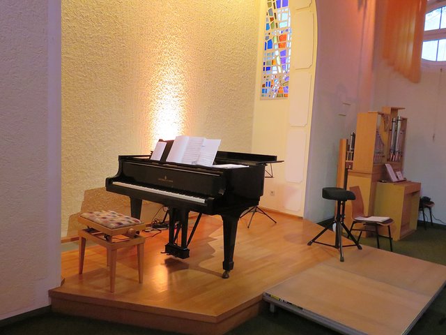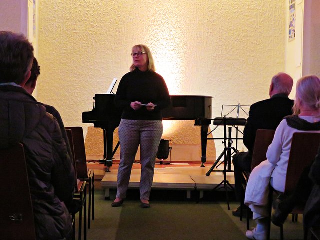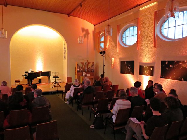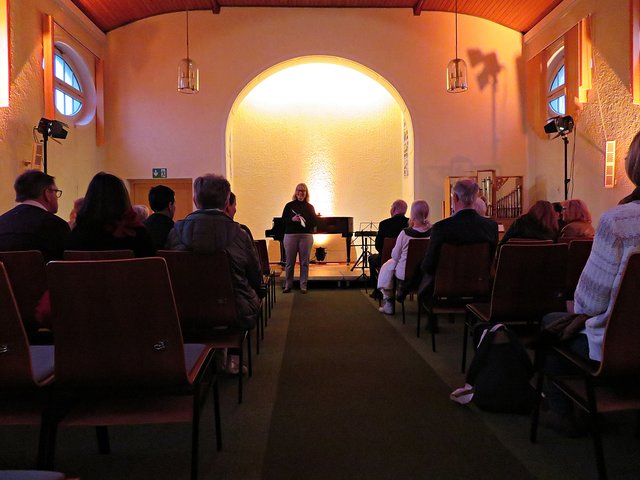 Im Vergleich zu den Außentemperaturen mit eisigem Wind war es in der Kapelle kuschelig warm. Begrüßt wurde das Publikum durch den Vereinsvorsitzenden Armin Moser und Vorstandsmitglied Monika Werra, die sich nochmal herzlich für die aus Mannheim geliehenen Podeste bedankte, ohne die die Platzierung des Kontrabasses schwierig bis unmöglich gewesen wäre.