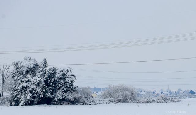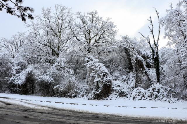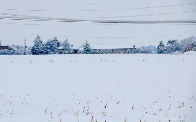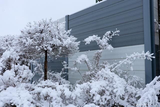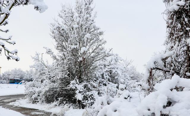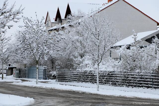Heute morgen wurden wir mit einer mindestens 15 cm dicken Schneedecke überrascht.