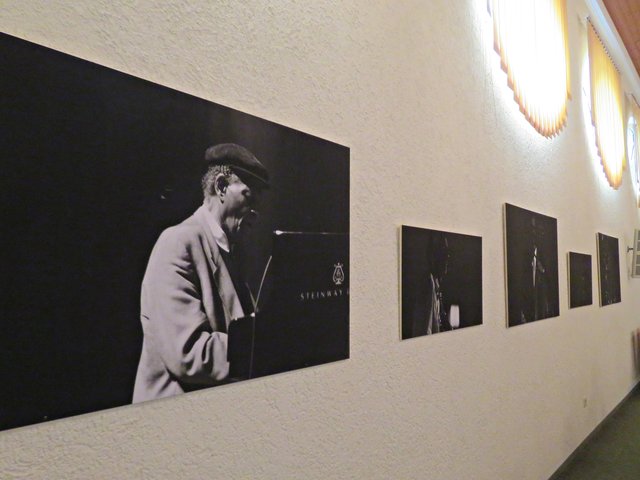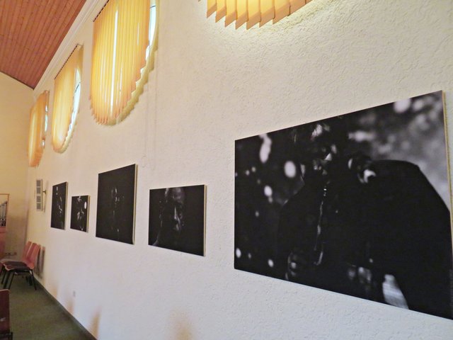 Limburgerhof: Am 22. Juli lud der Kulturverein Ensemble Park Limburgerhof e. V. zu einem Konzert sowie fotografischen Arbeiten des Künstlers Adonis Malamos ein. Ich war das erste Mal in dieser im Park gelegenen Kapelle. Sie wurde bestuhlt und ringsum mit Schwarz-Weiß-Porträtfotografien von berühmten Jazz-Musikern verschönert. Der Künstler Malamos erklärte, dass er seit 8 Jahren offizieller Fotograf vom Enjoy Jazz Festival sei und hierdurch viele Musiker kennenlernen und fotografieren durfte. Er ist gebürtiger Grieche und betreibt neben seiner Fotoleidenschaft das bekannte "Café Prag" in Mannheim. Aber an diesem Tage wolle er nur Beiwerk sein bzw. die Dekoration beisteuern, denn die Musiker stünden im Mittelpunkt.