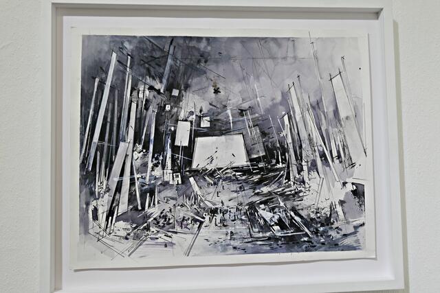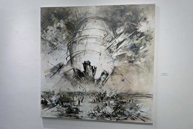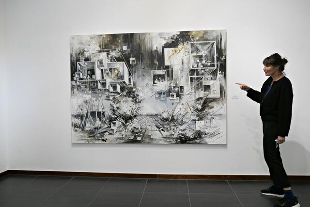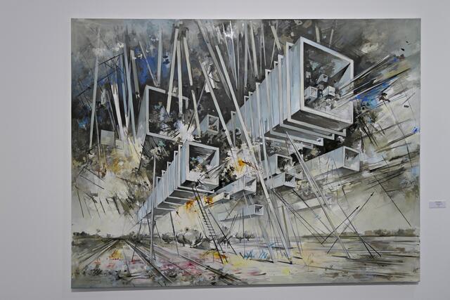 Ihre Gemälde sind sehr eigenwillig und man erkennt eine zersplitterte Zukunft und Utopien in Auflösung. Sie zerlegt ihre Malerei gekonnt wissenschaftlich und architektonisch in Zukunftsvisionen. „Utopia“ ist ein wundervolles riesiges Gemälde in Öl auf Leinwand (160 x 210 cm), kurdische Landschaften und auch Papierarbeiten befinden sich in der Ausstellung. Die Bilder sollen gedanklichen Anstoß geben zu Überlegungen über unser Zukunft. Sie sei in einer Utopie groß geworden und gibt das in ihren Bildern wieder. In ihren Visionen sieht sie etwas Gutes und stellt eine Erweiterung ihrer vorherigen Serie dar.