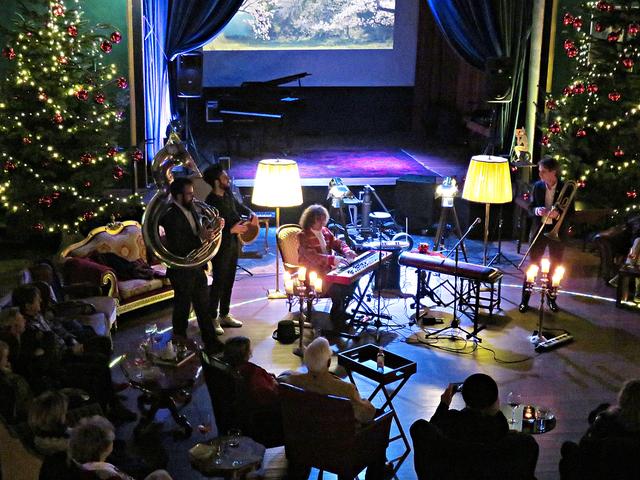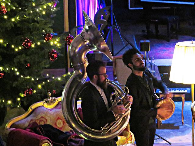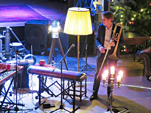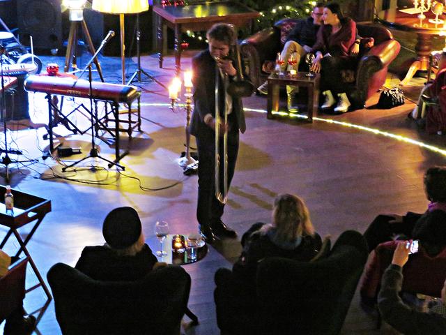 In Bezug auf J. S. Bach verarbeiteten die Beiden in verschiedenen Songs ein kleines Ratespiel für die Zuschauer. Noch einmal betraten die Tangotänzer das Parkett unter dem Beifall des Publikums. Danach stellte sich die Frage „Mozart“ oder „Take Five“? Sie spielten einfach beides zusammen, um danach „Don‘t stop me now“ fortzufahren. Mit den Worten „Seien Sie gut zu sich, seien Sie gut zu der Welt und seien Sie gut zu Ihren Kindern“ wollte sich Vanecek verabschieden, was jedoch durch tosenden Applaus zur zweimaligen Zugabe zwang. Mit Armstrongs „A wonderful world“ und Drafi Deutschers Song „Marmor, Stein und Eisen bricht“ war dann endgültig Schluss. Nein, nicht ganz, denn sein Zwillingsbruder, ebenfalls Musiker und nicht nur bluts- sondern seelenverwandt, Bernhard war in der Zwischenzeit eingetroffen. Ganz spontan holte er seine Posaune aus dem Kasten und gab eine Kostprobe. Zu ihm gesellten sich ebenso spontan Tayfun Ates mit seiner Darbuka und Lukas Nahm mit dem Sousaphone. „Das war alles so nicht geplant“ meinte Vanecek, der eigentlich noch etwas essen gehen wollte. Aber verhungern müsste niemand, versprach Paradiso-Chefin Beatrice d’Angelo, die ihren Mann als begnadeten Koch lobte. Sie bedankte sich noch bei Achim, der für die Elektrik sorgte, bei den höchst zufriedenen Gästen und den Musikern. Diese LUcation ist eine Besondere und deshalb wurde sie auch in Zusammenarbeit mit der Popakademie als Begegnungsstätte zum Abschalten letztes Jahr ausgezeichnet, worauf D‘Angelos sehr stolz seien.