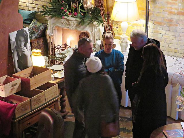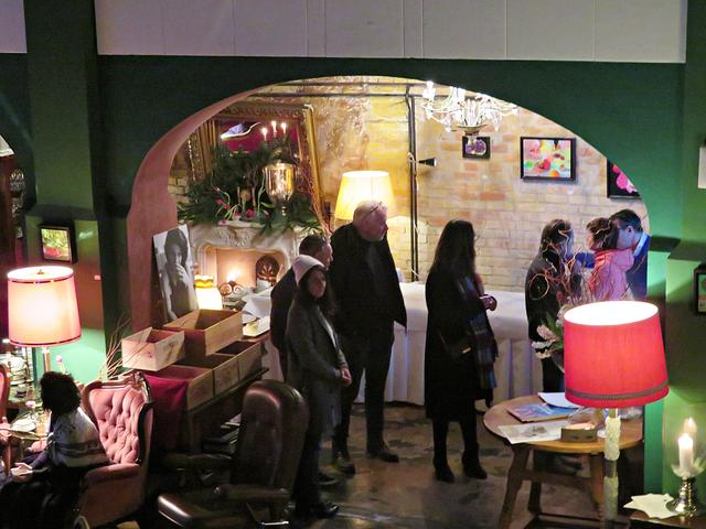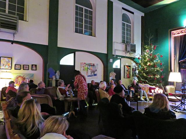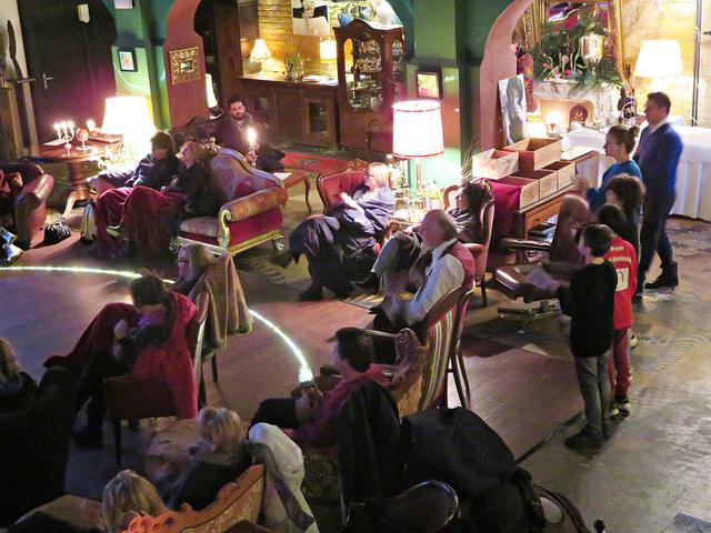 Locker vom Hocker begrüßten die Hausherrin Beatrice d’Angelo mit Tango-Stammtänzer Horst Hofmann und später hinzueilendem Hausherrn die Gäste, die in urigen bequemen Sofas und Sessels Platz fanden. Eintritt wurde keiner verlangt, jedoch bei Gefallen des Konzertes um „Scheinwerfer“ in der Eingangsbox gebeten.
