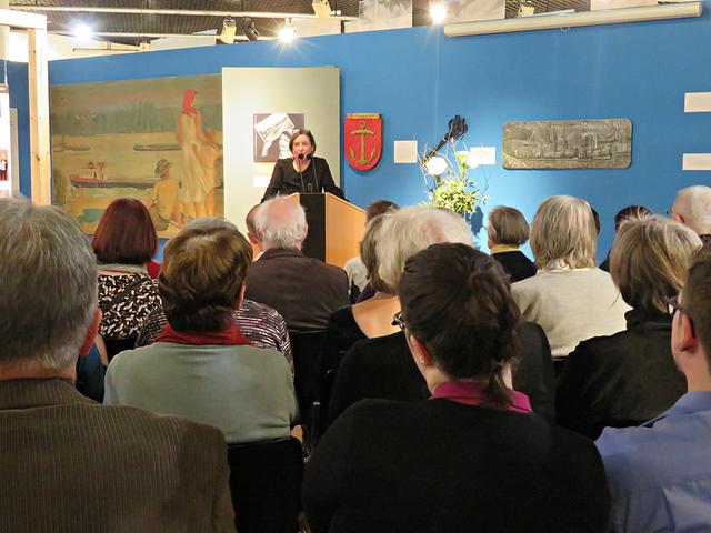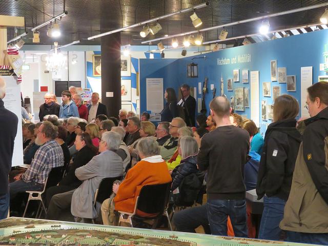 Anschließend begrüßte noch Dana-Livia Cohen als Projektleiterin der Ausstellung die Gäste, um das Rednerpult dann Frau Dr. Regina Heilmann, der Leiterin des Stadtmuseums Ludwigshafen, zu überlassen. Sie referierte unter anderem darüber, wie oft sich die Stadt im Laufe der Jahre gewandelt hat. Die Ausstellung sei als Familienausstellung angelegt und alles sei barrierefrei, so dass jeder die Ausstellung besuchen könne. Der anschließende Rundgang durch die Ausstellung solle im Uhrzeigersinn erfolgen. Auch gebe es einen „Sektempfang“ oder Alkoholfreies. Sie machte noch auf den um 17.00 Uhr stattfindenden bebilderten Eröffnungsvortrag von Werner Appel (stellvertretender Leiter des Bereichs Stadtentwicklung) aufmerksam und bedankte sich bei allen an diesem Projekt beteiligten Personen.