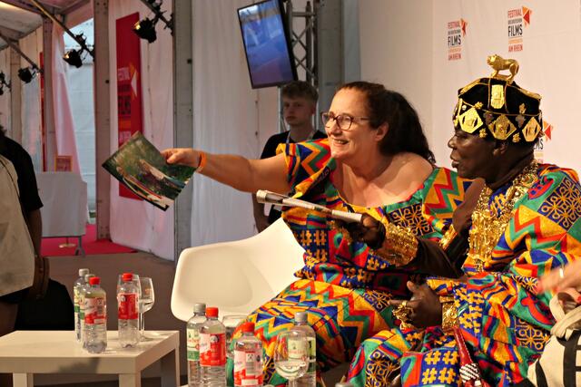 Beim anschließenden Filmgespräch mit dabei waren die Regisseurin Agnes Lisa Wegner, König Céphas Bansah, Katharina Bansah und Gabriele Bansah. Es wurde gefragt, wie sich das Ehepaar kennengelernt habe und ob sie sich als eine Art Entwicklungshelfer sehen, worauf Bansah antwortete, dass er damals durch einen internationalen Austausch nach Deutschland gekommen sei und von seinem beruflichen Werdegang. Als er mitbekam, dass es in Ghana kein Trinkwasser gab, hatte es bei ihm Klick gemacht und er beschloss zu helfen. In kürzester Zeit hat er veranlasst, dass vier Brunnen gebohrt wurden. Ein Dank ging an das deutsche Volk und seine Hilfsbereitschaft.