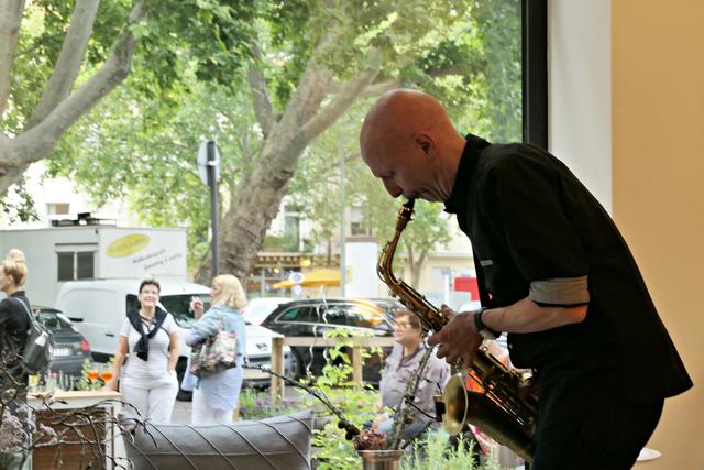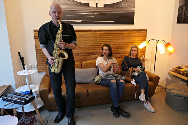 Zur Einstimmung auf einen netten Abend spielte der Musiker Olaf Schönborn auf seinem Saxophon, später auch Wunschstücke aus dem Publikum. Pünktlich um 19.00 Uhr begrüßte Eleonore Hefner als Chefin im Franz & Lissy und Leiterin des Kulturamtes die Gäste. Jeder wisse, dass Malamos Fotograf sei und sie müsste zu seiner Person nicht so viel erzählen, man solle einfach Abstand halten und die Kunst genießen. Die starken dynamischen Schwarz-Weiß-Fotografien von ihm verändern den Blick auf Ludwigshafen und zeigen ein anderes Ludwigshafen, ästhetisch und mit einem guten Auge. Sie bedankte sich bei ihm, dass er hier seine tollen Werke ausstellt.
