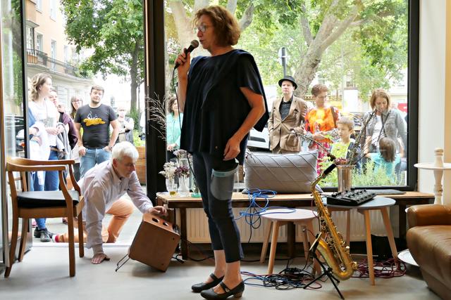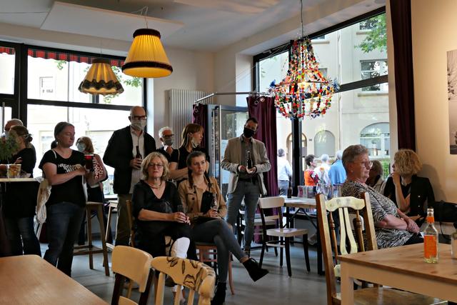 Neugierig fragte ich Herrn Hefner nach dem Ursprung der Namensgebung „Franz & Lissy“. Das erkläre sich ganz einfach durch die Lage des Cafés in der Liszstraße, nämlich Franz (Liszt) & Lissy (Liszt). Sie betreiben das Café seit einem Jahr und hätten in normalen Zeiten drei bis vier Vorstellungen im Monat. Die Ausstattung ist alles „Handarbeit“ in dem gemütlichen Café und dieses sei der erste Event nach Corona.