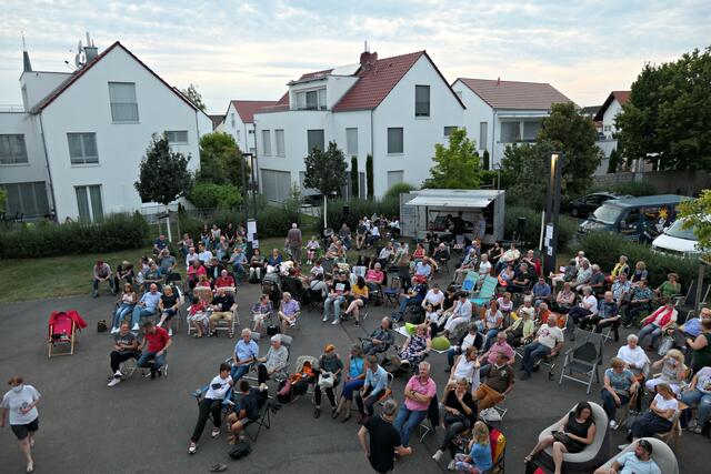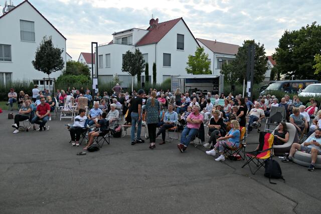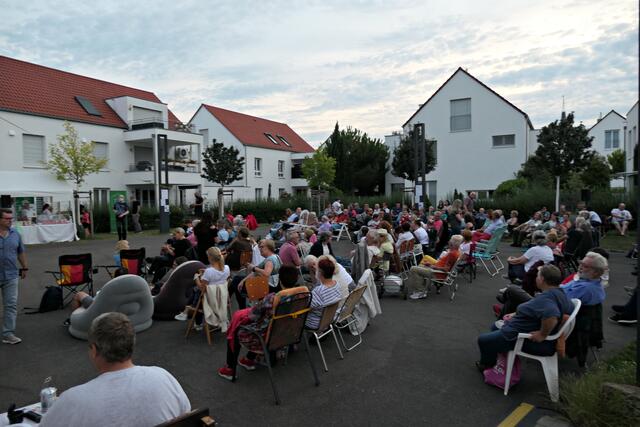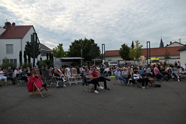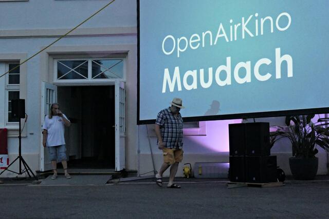 Ich hatte es mir auch dieses Jahr wieder in meinem mitgebrachten roten Liegestuhl vom „Festival des deutschen Film“ bequem gemacht. Und nach der Werbung, die natürlich wegen der Sponsoren laufen musste, und denen man von Herzen dankbar war, ging es dann los. Die Technik war bereit und der stellvertretende Ortsvorsteher Michael Keßler bedankte sich für die Organisation und die hartnäckige Suche nach Sponsoren durch Joachim Krieg und seiner Frau Manuela Engel-Krieg vom Förderverein Maudacher Jubiläen e. V., denn ohne die Beiden wäre dieses Event nicht möglich gewesen. Und als Joachim Krieg ins Publikum rief, ob man das nächstes Jahr nochmal machen solle, bekam er ein lautstarkes „JAAAAAA“ zu hören.