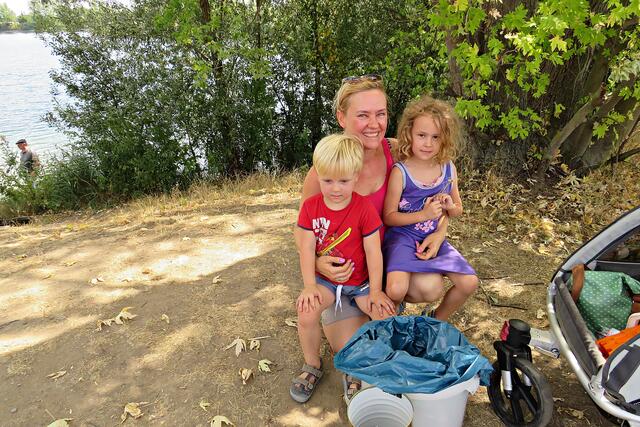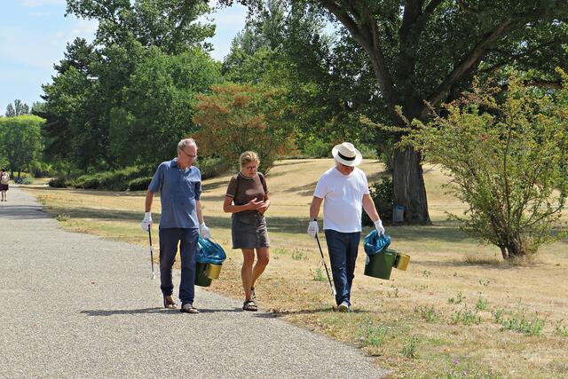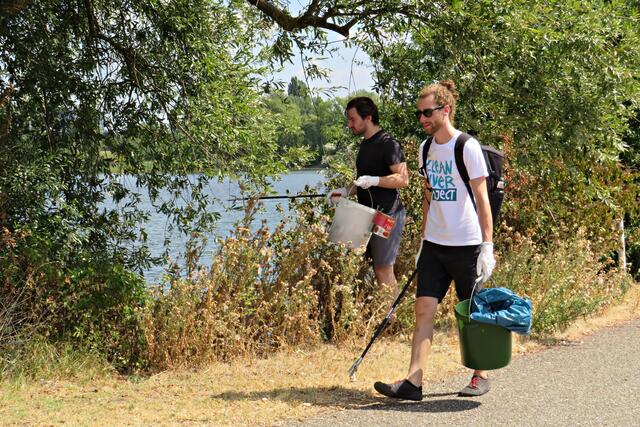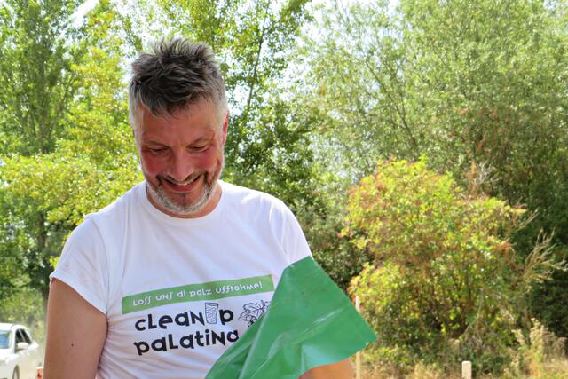 Ganz tolle Mithilfe auch von Familie Pusta, die mit ihren jüngsten sammelten, dem dreijährigen Alexander und der 5-jährigen Elisabeth. Ursula Hartwig sammelt täglich während ihres Spaziergangs mit Hund Müll ein und wirft ihn in den Mülleimer. Vom ASV Angelsportverein 1924 e. V. kamen vom Vorstand Herr Mantel und Gewässerwart Quarz hinzu und machten darauf aufmerksam, dass nicht hinter der Schwimmkette gesammelt werden darf, da in dieser Abgrenzung gelaicht wird und an der Kette scharfkantige Muscheln hängen. Vom ASV wird selbst zweimal im Jahr so eine Aktion am Land und im Wasser durchgeführt und auch Büsche und Bäume um den See zurückgeschnitten. Der Verein hat ca. 120 Vereinsmitglieder. Vom CleanUp Palatina war Olaf Maurer anwesend und erzählte, dass einmal im Monat eine größere Säuberungsaktion und ansonsten jedes Wochenende sauber machen angesagt sei sowie die Aktion „Sauberer Schulweg“.
