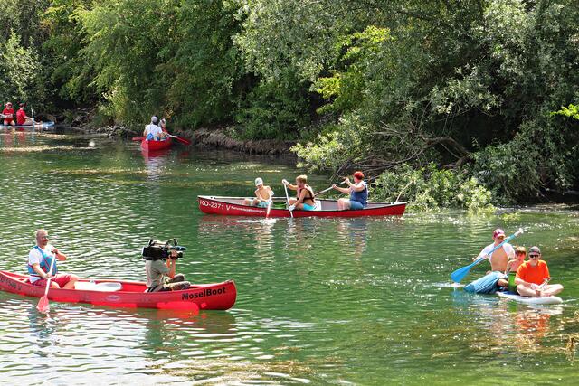 Der Clean River Projekt e. V. ist ein gemeinnütziger Verein in Winningen an der Mosel, der seit sechs Jahren an Flüssen und Seen achtlos Weggeworfenes sammeln. Gründer Stephan ist Fotodesigner und Künstler mit eigener Webseite. Er wird ausgewählte Stücke der heutigen Abfallsammlung in die Ausstellung „PURESGOLD“ im Oktober mitbringen. Hierzu wird der Müll sozusagen „vergoldet“. Seit 2016 gibt es den Verein, dieses Projekt seit 10 Jahren mit jeweils Büros in Mendig und Berlin. Der Gründer Stephan Horch war vorher als Einzelkämpfer unterwegs. 2015 führte ihn sein Weg alleine im Kajak von Winningen an die Nordsee und 2019 im Kajak von Koblenz nach Berlin sammelte man in 30 Tagen mit 1000 Helfern 45.000 Liter Müll.