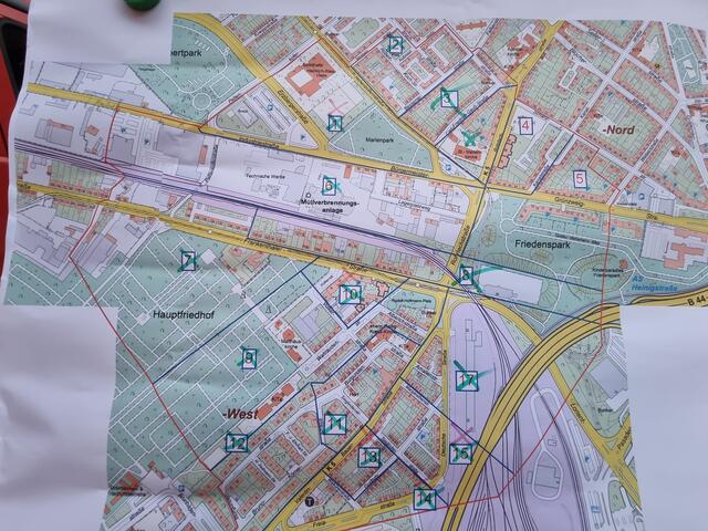 Das komplette Evakuierungsgebiet wurde in 17 Teilgebiete unterteilt (siehe Foto). 14 davon sind um 20.10 Uhr von den Einsatzkräften fertig geprüft und freigegeben. in drei Gebieten halten sich noch Menschen auf beziehungsweise diese wurden noch nicht freigegeben.