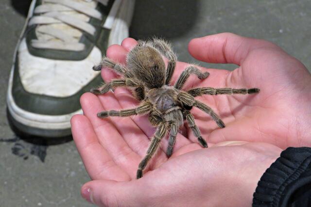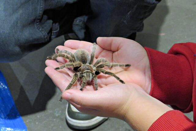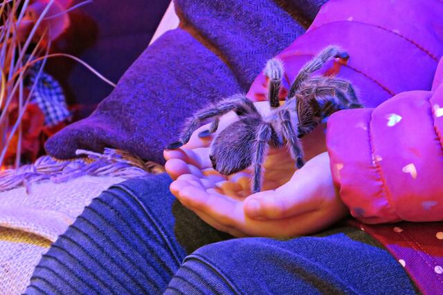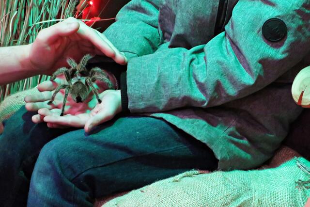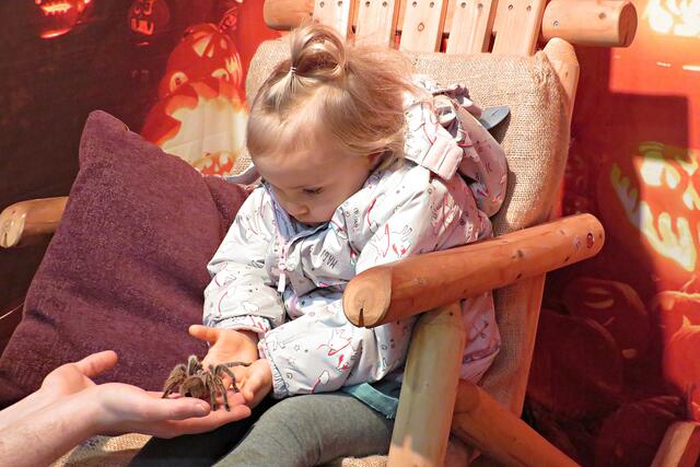 Die bald 3-jährige Emma-Marie Gleber saß fast ehrfürchtig in ihrem Sessel und ließ sich nicht nur eine Schlange, sondern auch eine Vogelspinne auf die Hand setzen. Alle Kinder bekamen Instruktionen wie sie sich zu verhalten hätten und so waren sie mucksmäuschenstill und bewegten sich nicht.