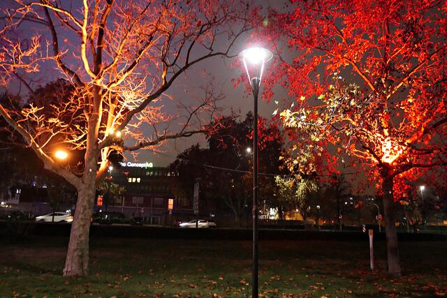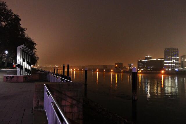 Kommt man an den Rhein, wirkt sogar der Himmel leicht Orange. Am Rathaus-Center steht eine große Tanne mit orangefarbenen Christbaumkugeln. In der Bismarckstraße setzt der Energieversorger Technische Werke Ludwigshafen (TWL) am Innenstadtgebäude orange Akzente. Die Lutherkirche leuchtet ebenfalls zwischen der Häuserzeile hindurch. Besonders schöne Effekte gibt es bei der Stadtbibliothek. Zwischen Zahnarzt und Blumenladen leuchtet es ebenfalls in herrlichem Orange. Und natürlich verändern die beleuchteten Bäume am Rheinufer ihre Farben, so dass auch hier Orange dabei ist. Einige Fenster im Stadthaus Nord auf dem Europaplatz erstrahlen. Und auch das Kulturzentrum dasHaus hat eine orangefarbene Beleuchtung in den Fenstern. Besonders schön erstrahlt die Pegeluhr auf der Parkinsel.