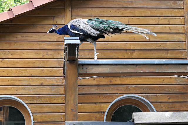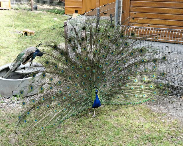 Ludwigshafen. Ein Besuch im Wildpark Rheingönheim lohnt sich immer. Hier kann man jede Menge frische Luft inhalieren, endlich mal ein Ort ohne Mund-Nase-Maske, und entweder einen Familienausflug machen oder wie ich Tiere fotografieren und die Ruhe genießen. Am 30. Mai war der Wildpark ziemlich gut besucht. Und gleich nach dem Eingang schlägt gleich das erste Tier ein Rad, ein herrlicher farbenprächtiger Pfau. Er weiß, dass er schön ist und wandelt mit stolzer Brust durch das Areal. Sein "Bruder" ist heute nicht so aktiv, sein Gefieder bleibt geschlossen, dafür fliegt er zum besseren Überblick aufs Dach.