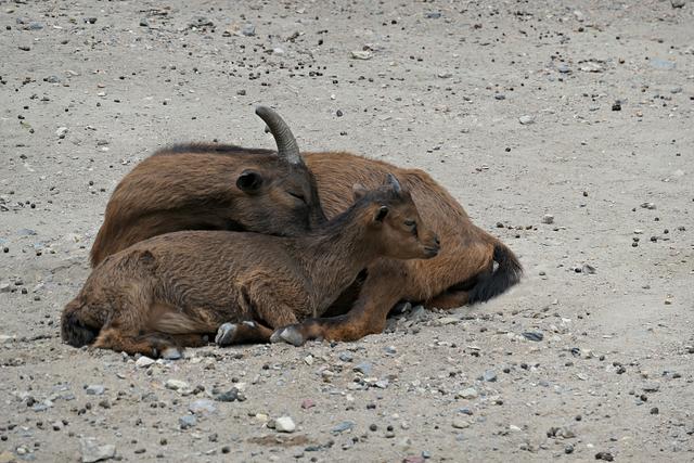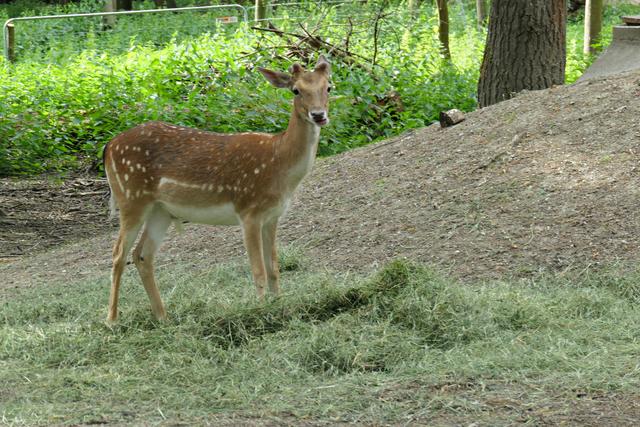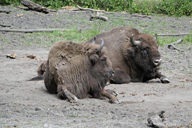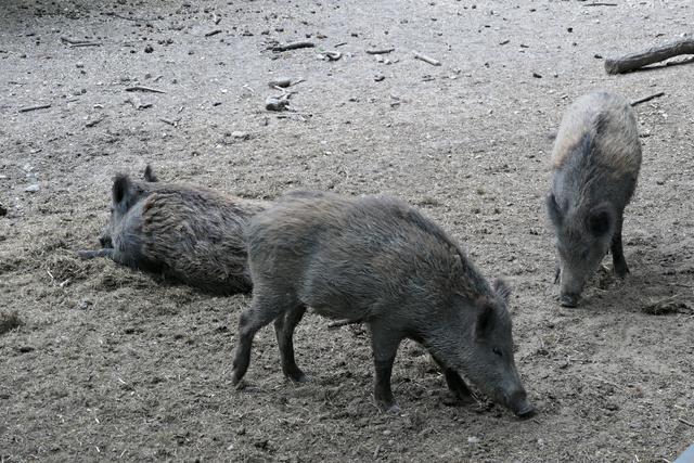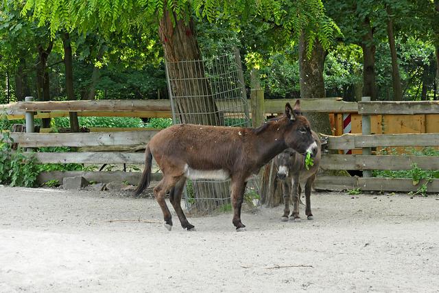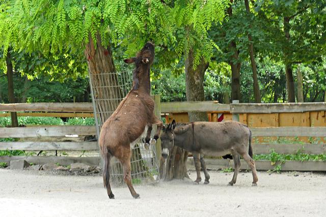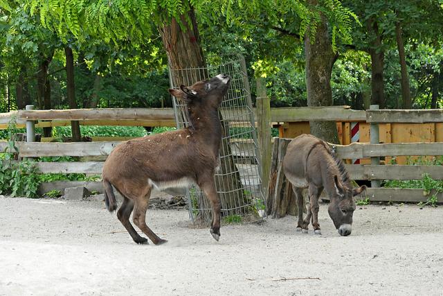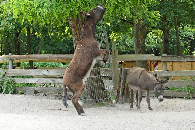 Wo früher Kaninchen und Ziegen gestreichelt werden konnten, wird es ein Hühnergehege geben. Ein paar Hühner haben es sich bereits bequem gemacht. Bei den Ziegen gibt es auch etliche Zicklein und manchen Ziegen steht die Geburt noch bevor. Ein praller Bauch zeugt von baldiger Niederkunft. Die Esel gegenüber im Gehege haben einen besonders leckeren Laubbaum bei sich. Nur die Frage, wie kommt man an das leckere grüne Laub? Ein Esel ist besonders clever und stellt sich fix auf die Hinterbeine. Entlang des Weges laufen Rehe und Gänse durch den Park und wenn man Glück hat, sieht man auch die flinken Eichhörnchen. Die Wildschweine stehen heute nicht im Mittelpunkt meines Interesse, die fechten ihre Kämpfe aus und fressen nur. Gegenüber im Gehege sind die Tarpane (Waldwildpferd) untergebracht. Am 11. Mai wurde hier ein Fohlen geboren. Ich zähle vier Tarpane, die alle momentan am Fressen sind. Das Fohlen weicht seiner Mama nicht von der Seite und wenn es Lust hat muss es einfach nur den Kopf zur Seite drehen, um an die "Milchbar" zu kommen. (mel)