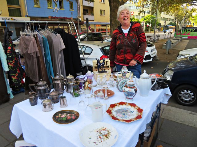 Ludwigshafen. Am 6. Oktober war es wieder so weit. Wie schon ganz viele Jahre fuhr ich auch heute Morgen kurz nach 7.00 Uhr zum Flohmarkt nach Ludwigshafen. So lange es noch so schön draußen ist, bietet es sich an, seinen Flohmarktstand im Freien aufzustellen. Und das war heute der Fall. Punkt 8.00 Uhr darf der mitgebrachte Tisch mit allem Möglichen aus Keller und Haus belegt werden.