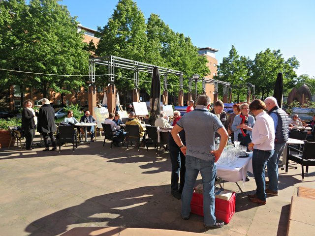 Ludwigshafen. Am 13. Mai wurden elf Fotoarbeiten im Rahmen des Projektes „Stille in der Stadt“ auf dem Lutherplatz sehr eindrucksvoll in Großformat auf Staffeleien präsentiert. Die Sonne gab an diesem Abend noch einmal Vollgas, aber im Schatten hatte man die Eisheiligen im Nacken. Der Fotowettbewerb „Mein Ruhe-Ort in LU“ wurde von der evangelischen Kirche und dem Marketingverein ins Leben gerufen und für die beliebtesten durch Facebook gevotet. Die Fotografen und Fotografinnen hiervon wurden zu diesem Event eingeladen. Am 19. Mai wird dann die Prämierung der Fotos durch Frau OB Jutta Steinruck um 17.00 Uhr in der Melanchthon-Kirche, Maxstraße 38, stattfinden. Es winkt ein gemeinsames Abendessen mit der Oberbürgermeisterin. Es gibt einen Jury-Preis und den Publikumspreis. Welches dieser wundervollen Foto wohl das Rennen machen wird? Marc Schall war gleich mit drei Fotos vertreten (zwei vom Großparthweiher und eins vom Sticklerweiher), Maike Müller hatte den Backsteinweiher mit einer Glaskugel in Szene gesetzt, Ilona Schäfer verweilt gerne im Hack-Museumsgarten und hatte hiervon ein Foto gemacht, Benedikt Pracht fotografierte im Maudacher Bruch, Dagmar Lamm war mit ihrer Kamera ebenfalls am Großparthweiher unterwegs, Hans-Jörg Sobeslavsky fotografierte das Rheinufer mit Pylonbrücke, Klaus Hubert Kick hatte ebenfalls einen Weiher als Motiv und auch Peter Schwenn, der den Jägerweiher in Augenschein nahm. Und Brigitte Melder hatte ebenfalls ein Bild in der Ausstellung, nämlich die Baumallee „Maria Himmelfahrt“.