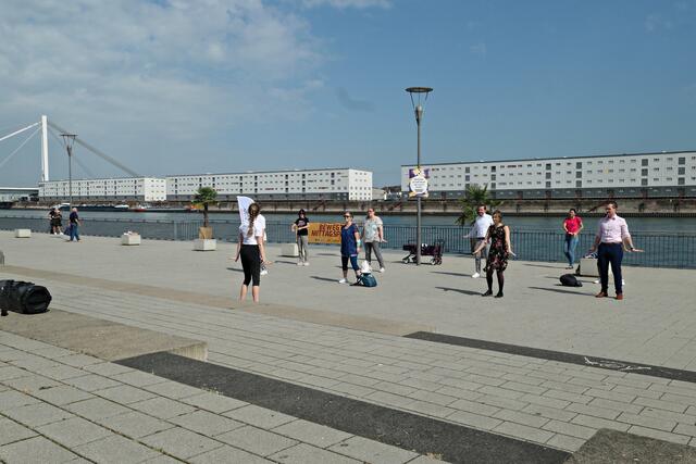 Zu Beginn begrüßten Saskia Helfenfinger-Jeck und Patrick Steidl die „Sportler“ im Namen des Ludwigshafener Sportverbandes an einem der schönsten Flecken in Ludwigshafen. Man solle sich an die Coronaverordnung halten, also, da im Freien, nur Abstand halten. Eva Weile erklärte anschließend kurz, was auf dem Plan stehe, nämlich Bewegungsübungen und Gehirnjogging.