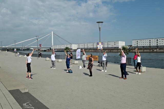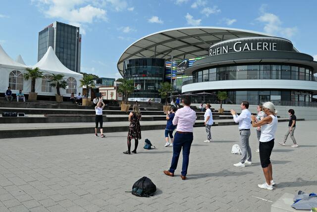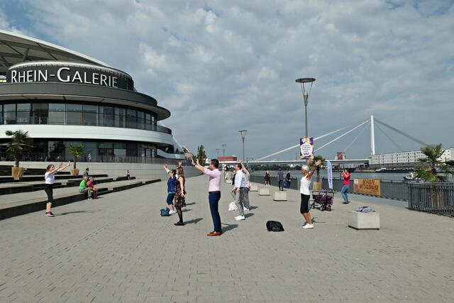 Aufi geht’s am 16.09. um 12.15 Uhr für 20 Minuten Erfrischung für Körper und Geist. Bei schönem Wetter findet es am Platz der Deutschen Einheit (an der Rheinpromenade) und bei Regen im 1. OG der Rhein-Galerie (gegenüber Müller) statt. Die Teilnahme ist kostenlos und unverbindlich. Sie können bekleidungsmäßig kommen wie Sie sind; es wird nicht zu heftig. (mel)