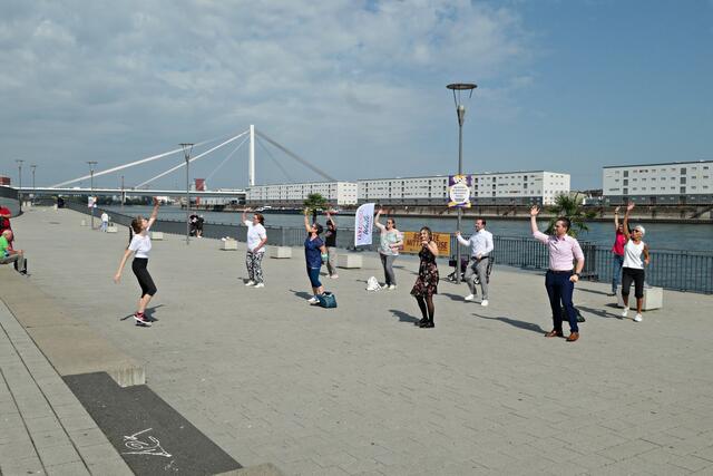 Ludwigshafen. Am 9. September führte mich mein Weg nach Ludwigshafen, da heute ab 12.15 Uhr an der Rheingalerie direkt am Rhein gesportelt werden sollte. Wie bereits im letzten Jahr am Ludwigsplatz fand es dieses Mal an dieser hervorragenden Location statt. Initiiert wurde diese Aktion vom Ludwigshafener Sportverband in Kooperation mit der Landesinitiative „Rheinland-Pfalz – Land in Bewegung“, unterstützt von der Stadt Ludwigshafen sowie der BKK Pfalz und der Rhein-Galerie.
