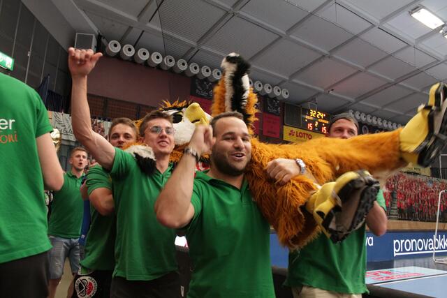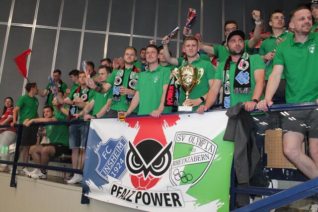 Die Jungs in Grün (Rheinzabern) und Blau (Insheim) rockten die Halle, hatten als „achter Mann“ wesentlichen Anteil daran, dass die Eulen den 14:15-Pausenrückstand drehten und 28:26 gewonnen haben. Die Fußballer gewannen viele Sympathien – vor allem auch bei der Mannschaft der Eulen.