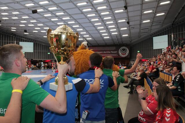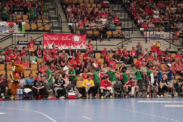 Die Fußballer aus der Südpfalz sorgen für tolle Stimmung bei den Handballern von den Eulen Ludwigshafen