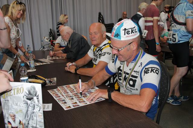 Am Samstagabend fand im TECHNIK MUSEUM in Sinsheim die Legendenparty der Radsportasse statt. Bei der TRETRO der „Rudi Altig Gedächtnis-Tour“ waren sehr viele erfolgreiche Radsportler von A (Willi Altig) bis Z (Erik Zabel) vor Ort. Am Sonntag gaben die Radsportasse für die Fans Autogramme. Die Idee der TRETRO, die seit 2015 jährlich stattfindet, stammt von Rennradsammler Joachim „Jockel“ Faulhaber aus Kaiserslautern. Er präsentiert seit dem Jahr 2014 im Technik Museum in Sinsheim seine „Jockels Rennrad Sammlung“ mit vielen Rädern, Trikots, Andenken, usw. der Radsportstars. Im Technik Museum kann auch die Sonderausstellung über Rudi Altig besichtigt werden. Weitere Informationen gibt es im Internet unter www.tretro.de bzw. über das Technik Museum in Sinsheim unter www.technik-museum.de. Das Technik Museum in Sinsheim und auch das Technik Museum in Speyer ist täglich von 9 bis 18 Uhr geöffnet, am Wochenende sogar bis 19 Uhr.