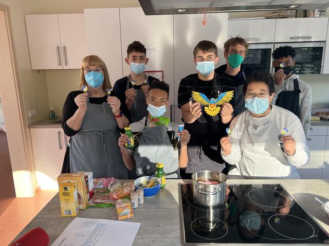 Wie furchtbar, dass nun wieder Kinder der Ukraine bedroht sind, durch Krieg und Flucht. So entstand die Idee, durch einen "Friedensmuffin" Hilfe zu leisten. Gemeinsam mit Schulleiterin Ursula Grass wurden donnerstags 145 leckere Muffins gebacken.
