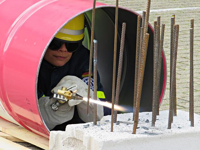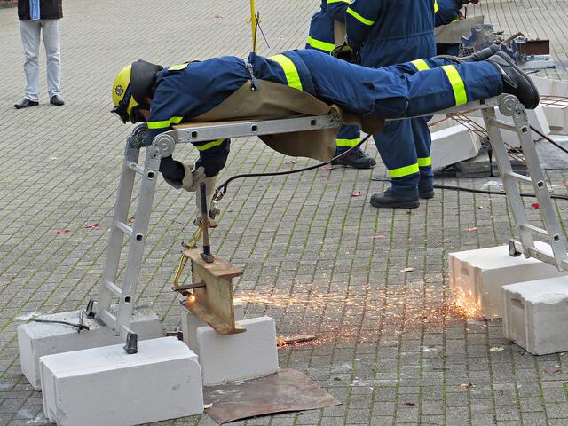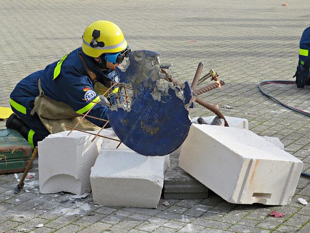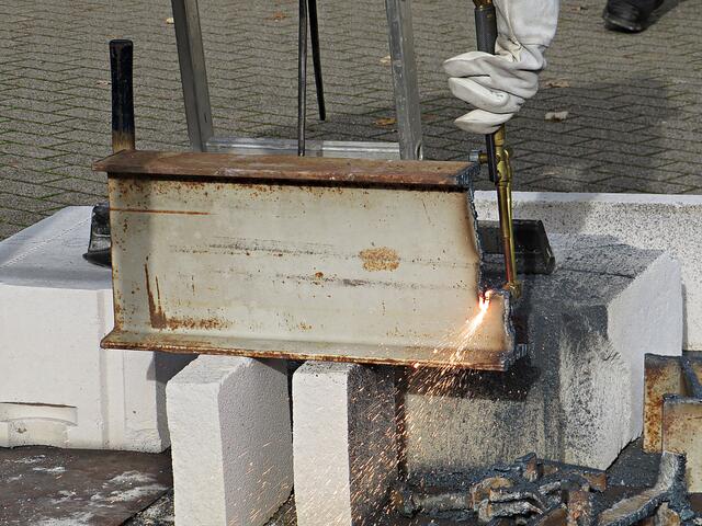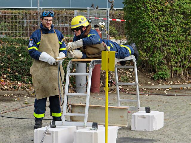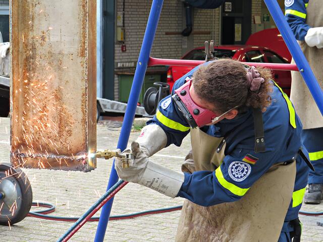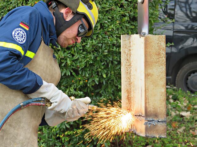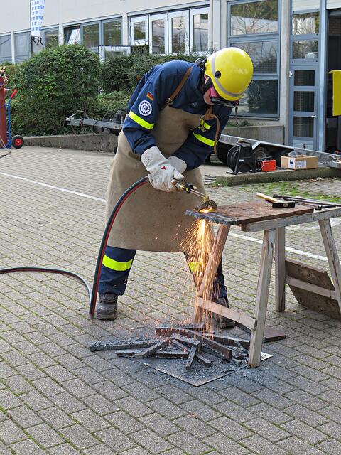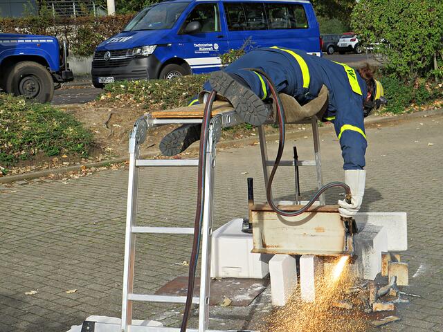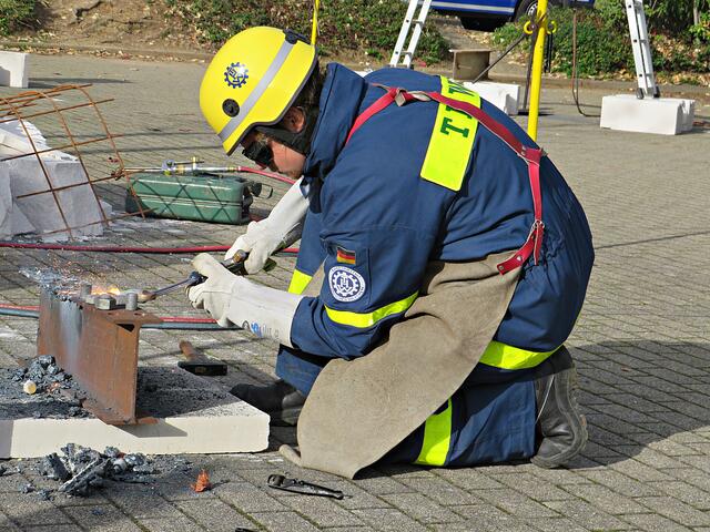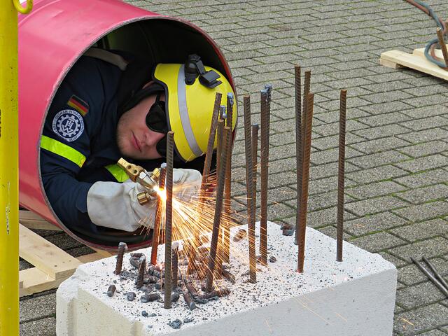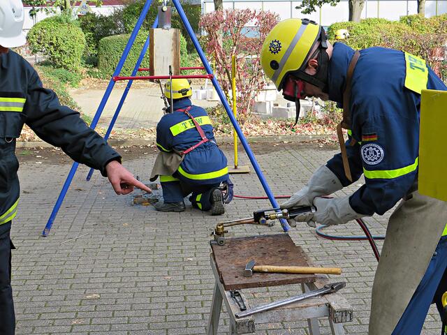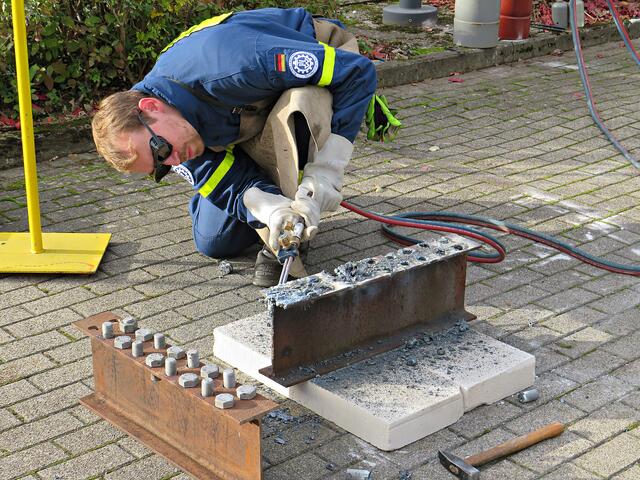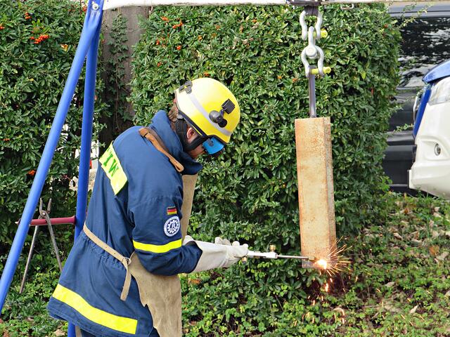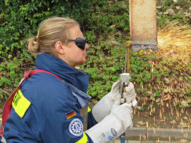 Die Helfer des THW Heidelberg erlernen diese Arbeitstechnik, weil diese für das Räumen und Bergen zerstörter Konstruktionen aus Stahl sehr effizient ist und stromlos