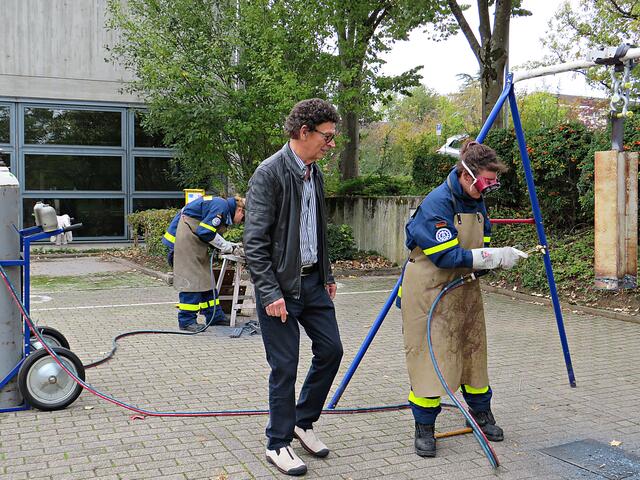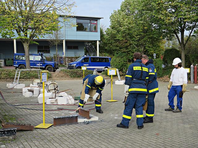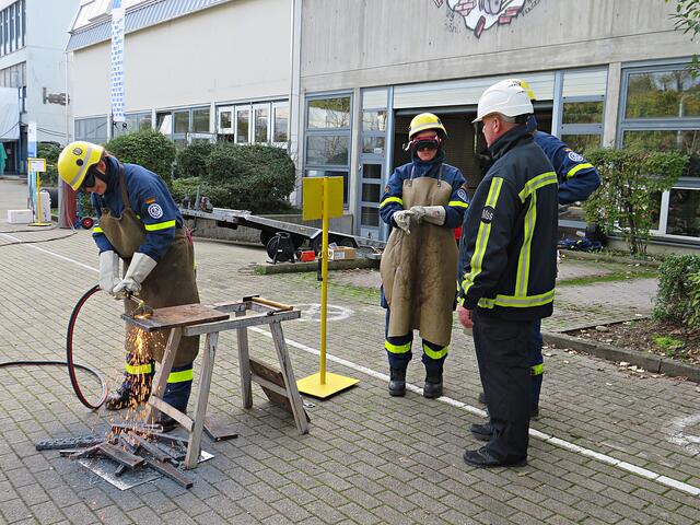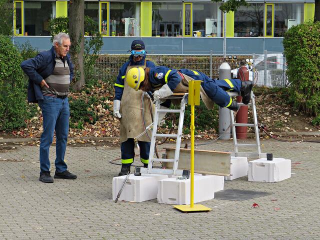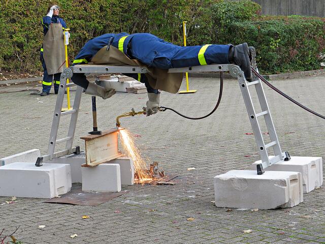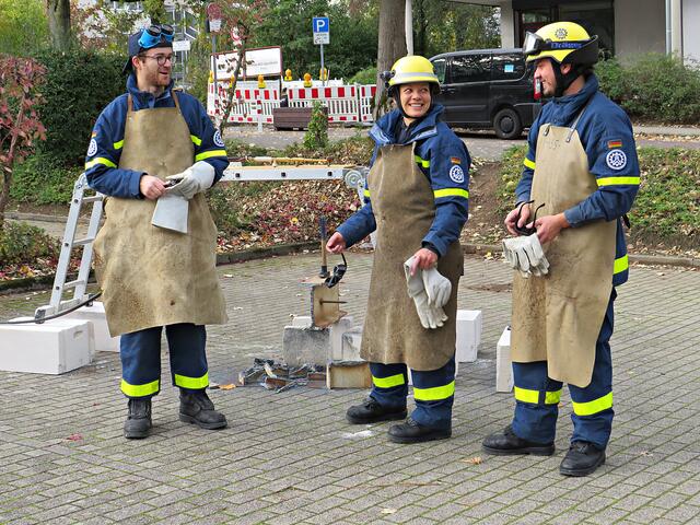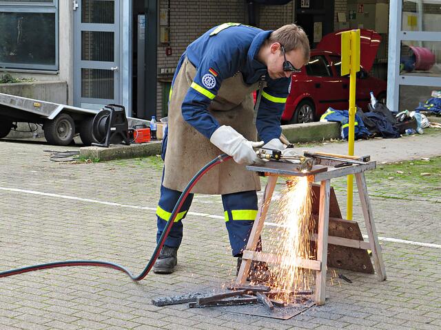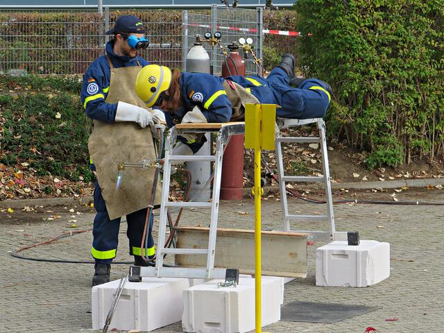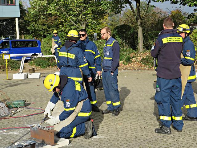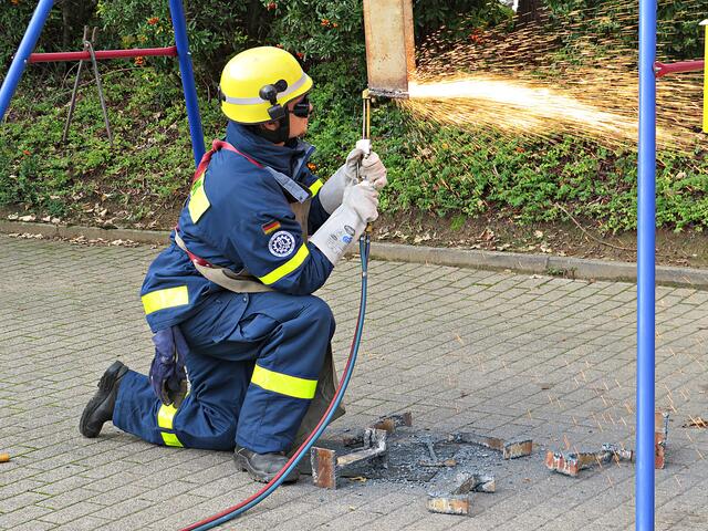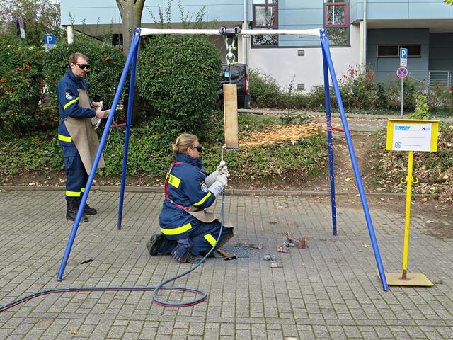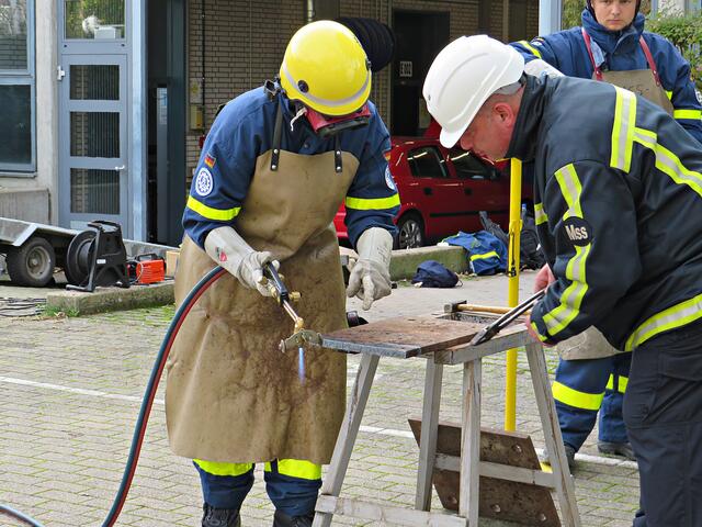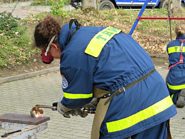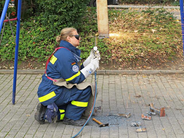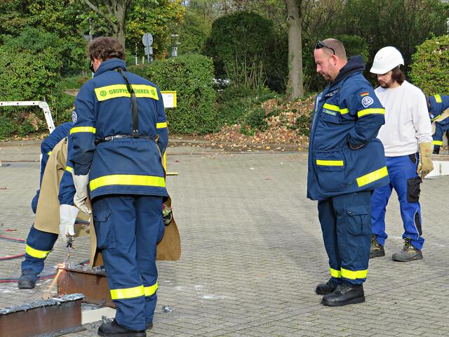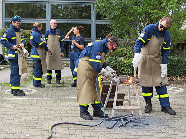 Bereits am Samstag, 08.10. wurden die THW-Helfer/innen zum Thema Sicherheit und Arbeitsschutz hinsichtlich der Arbeiten mit Acetylen und Sauerstoff und ersten Brennschneid- und Plasmaschneidübungen unterwiesen. Um die erlernten Kenntnisse und Arbeitstechniken in der Praxis umzusetzen und zu festigen, fand heute an zehn Übungsplätzen auf dem Gelände der Hubert-Sternberg-Schule das Abschlusstraining mit den zwei einsatzrelevanten Trennmetoden von Metallen statt.