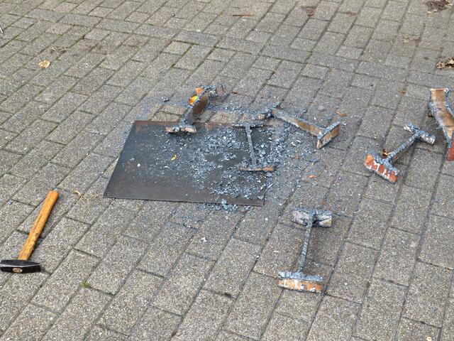 Wiesloch. Am 29. Oktober fand an der Hubert-Sternberg-Schule (kurz HSS) unter der Obhut von Kursleiter Matthias Huber ein Brennschneidkurs für 10 Helfer des THW Heidelberg statt, zu dem ich eine herzliche Einladung erhielt. Von 8.00 bis 15.00 Uhr gab es auf dem Lehrerparkplatz das Brennschneiden mit Acetylen und Sauerstoff zu bestaunen. Eine halbe Stunde Mittagspause war vorgesehen, ansonsten wurde „gebrannt“ was das Zeug hielt. Hintergrund war, dass die Technischen Hilfswerke Heidelberg im Einsatz für den Aufbau der Flutkatastrophe im Ahrtal waren. Dort benötigt man mehr Brennschneider und um den Umgang mit diesen Geräten fachlich von der Pieke auf zu erlernen diente dieser Lehrgang.