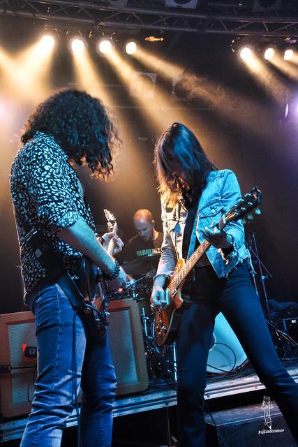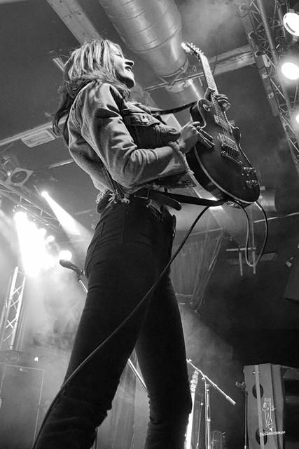 Nachdem die französische Bluesrock-Gitarristin schon zweimal im Musiktheater Rex gastierte, kam sie nun am 18. September auch nach Mannheim in den 7er Club, wo sie ihr neues Album "Burning Bright" präsentierte, das am 08. November erscheint. Sie überzeugte mit viel Spielfreude und versammelt mit Mathieu Albiac an der Rhythmusgitarre, Bassmann François C. Delacoudre und Antonin Guérin am Schlagzeug eine kraftvolle Band hinter sich. Ich selbst bin erst vor kurzem über YouTube auf die talentierte Gitarristin gestoßen, deren Stimme -mir persönlich- auf dem aktuellen Album Hard Blues Shot etwas zu brav für den Sound erschien. Dies kokettiert sie auch selbst bewusst und ironisch mit einem ihrer Songs „Too Nice for Rock n’ Roll“. Dies hat sich mittlerweile glücklicherwiese geändert und die Stimme passt jetzt auch zum Sound. Aber das ist meine persönliche Meinung, das kann jeder anders sehen.